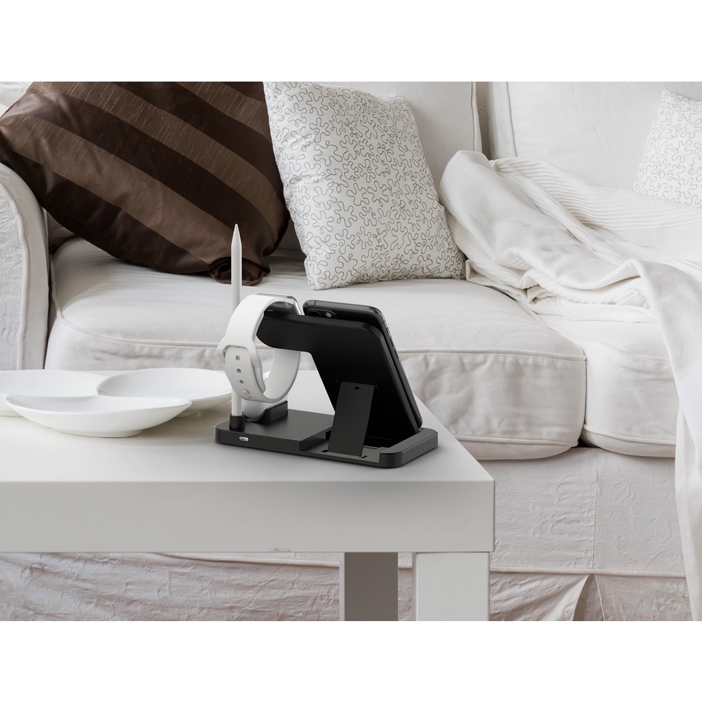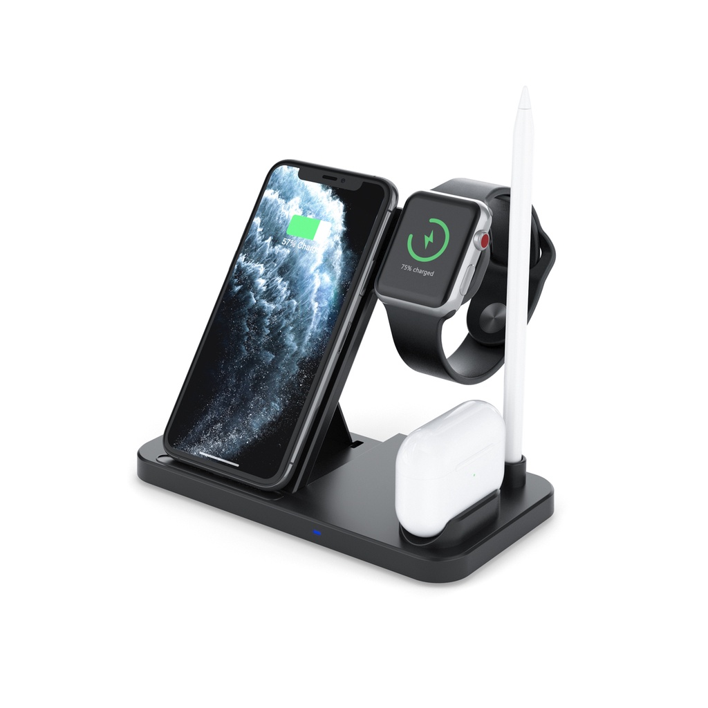 - Specifications:- Material: ABS- Input: 5V/2A, 9V/2A- Output iWatch: 2W- Output Apple Pencil: 2W- Output Airpods: 5W- Output Phone : 5W 7.5W 10W 15(Max)- Color : White/Black- Receiving Distance 2-10mm- Package: 18x15x2.5cm- Packaget Weight: 200Grams- Cable Length 1.2mWhat's in the package?- 1 x 4 in 1 QI Wireless Charging Station- 1 x Type-c USB Charging Cable- 1 x User Manual3 Months Local Warranty*Terms and conditions applied *