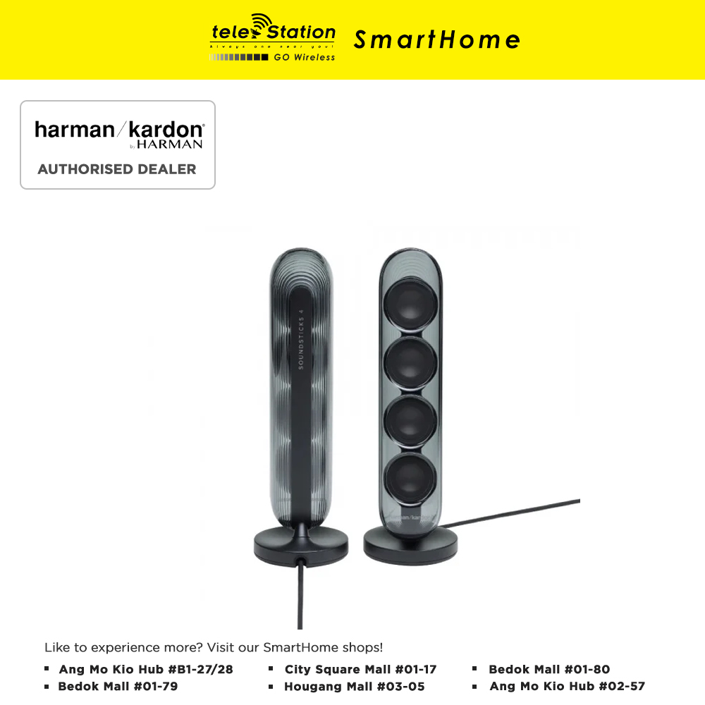 Welcome a timeless icon into your home with Harman KardonSoundSticks 4. Extraordinary sound meets sculptural design in this one-of-a-kind audio masterpiece from the legendary Harman Kardon brand. Bring harmony into your living space with unparalleled sound quality and beautiful transparent materials. Highly regarded as a true work of art by passionate audio enthusiasts around the globe, Harman Kardon SoundSticks 4 is a stunning system that fills your space with vibrant treble and incredible bass. Transform the look and sound of your life and experience music in a new, exceptional way.