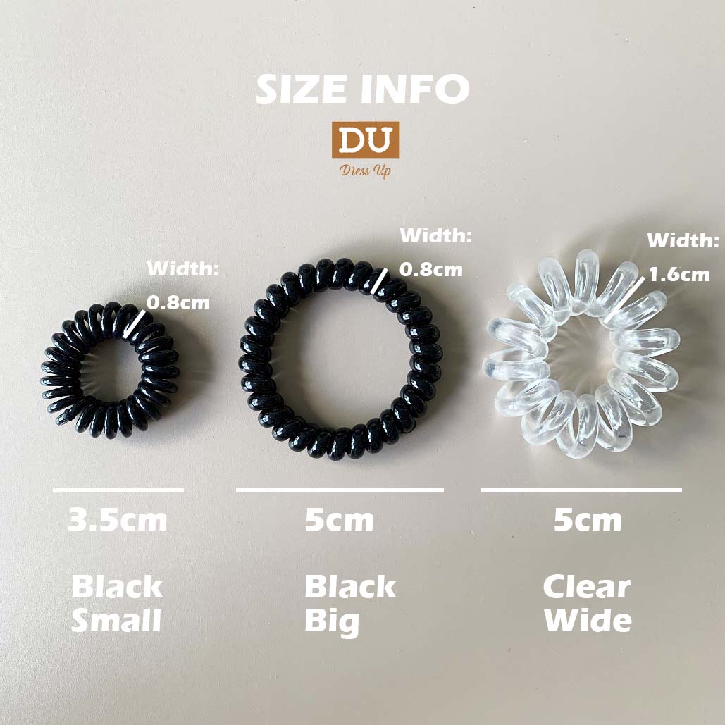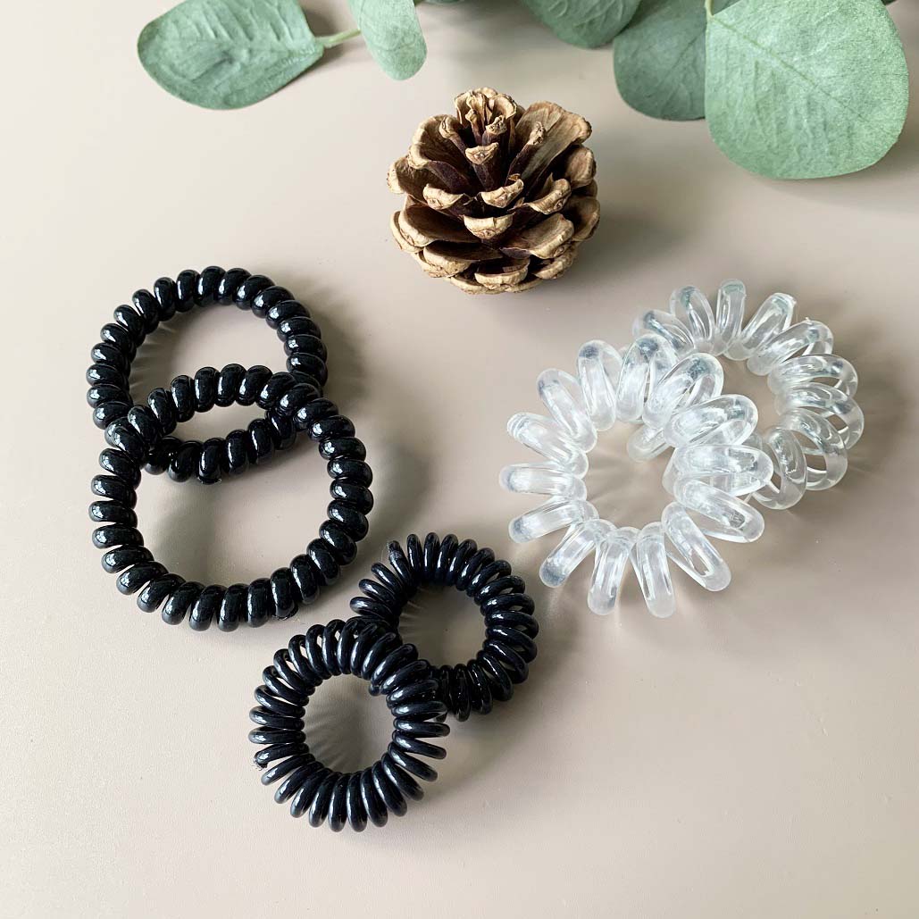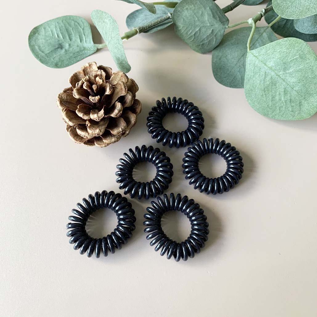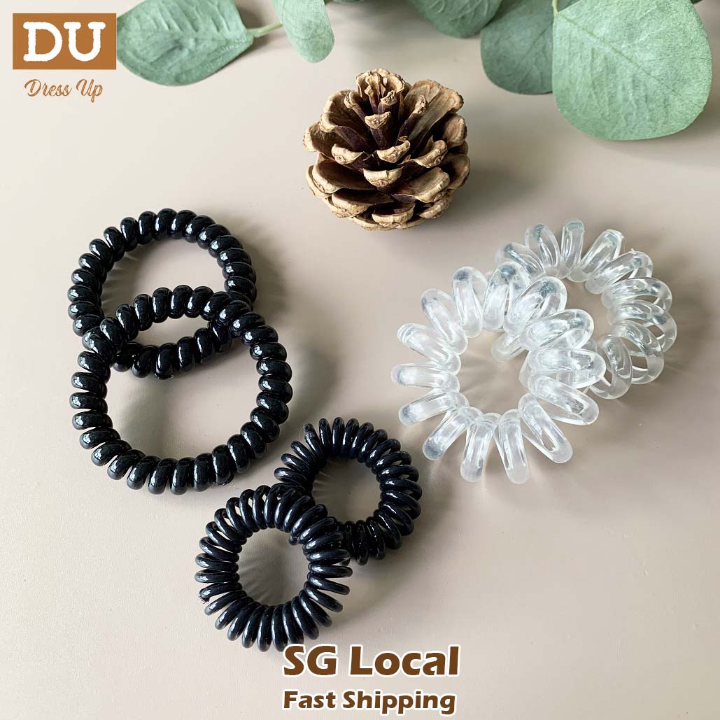 [SG] 5pc Black Telephone Wire Cord Head Ties Spiral Hair Band, Transparent Hair Ring Hair Ties, excellent for swimming