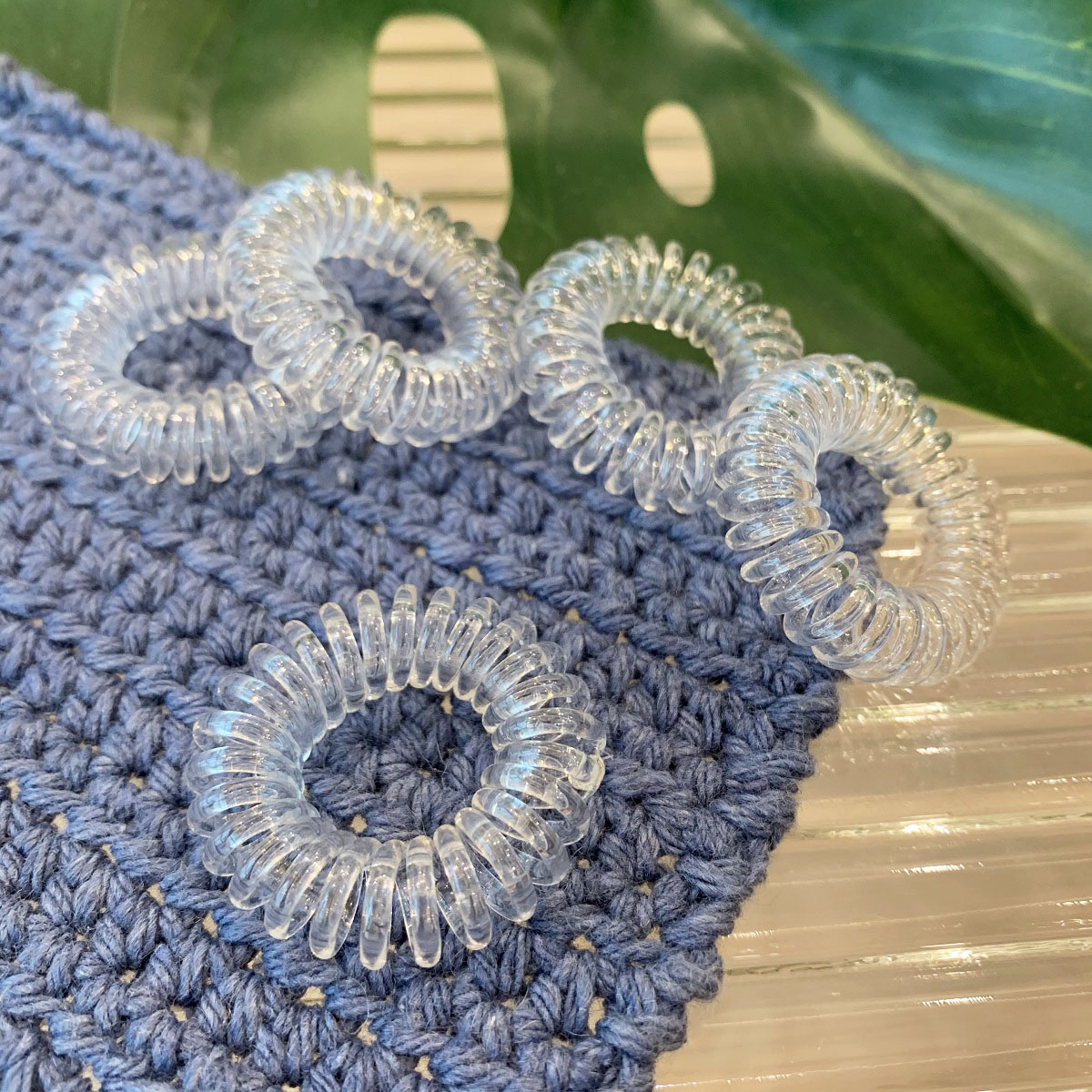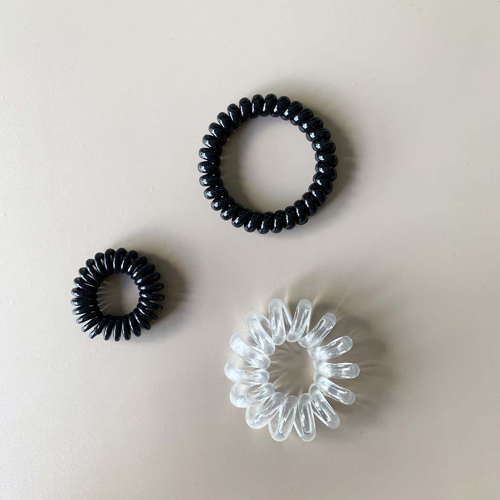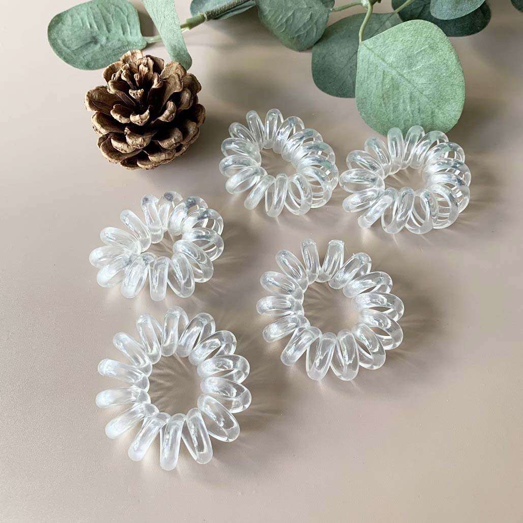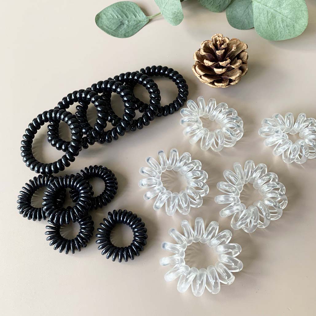 [SG] 5pc Black Telephone Wire Cord Head Ties Spiral Hair Band, Transparent Hair Ring Hair Ties, excellent for swimming