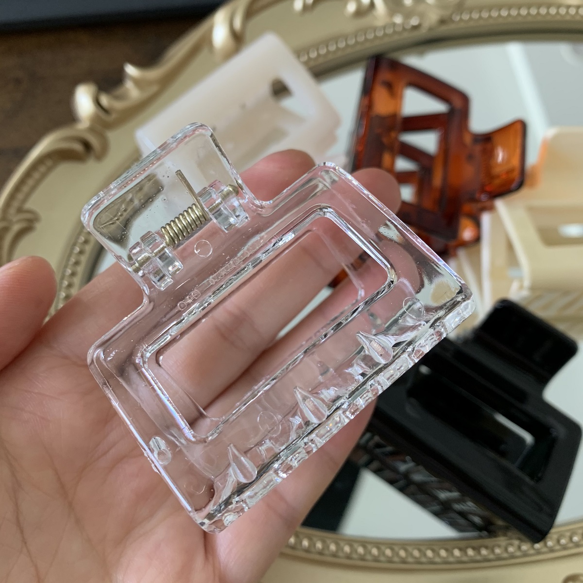 [SG Seller | Light & Tight] 5cm Medium Size Korean Vintage Amber Acrylic Hair Claw Grip Clip, texture hollow ins high-quality hairpin top clip for women