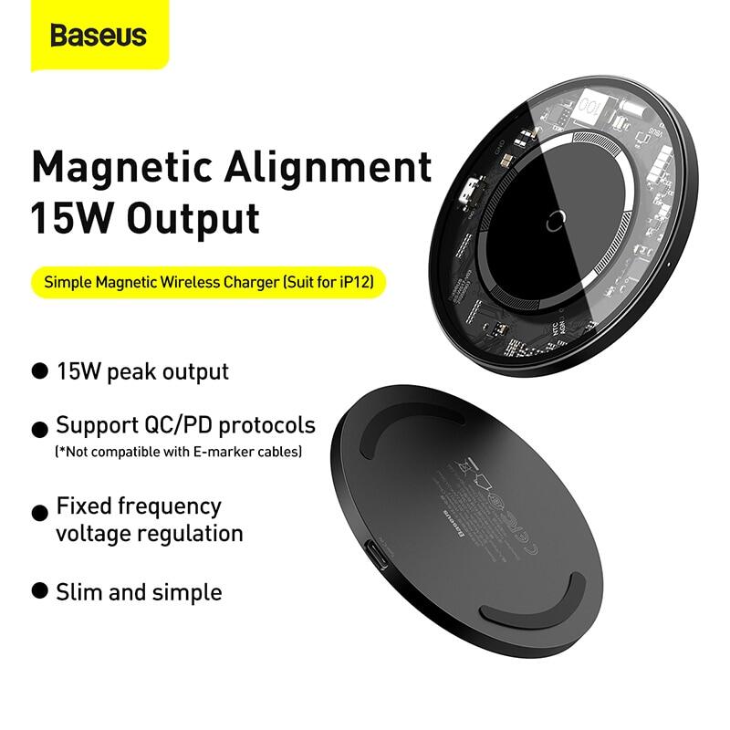 Baseus Magnetic Wireless Charger For iPhone 12 Pro Max 15W Fast Charger For iPhone 12 11 XS X XR Charger For Airpods Visible Qi
