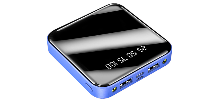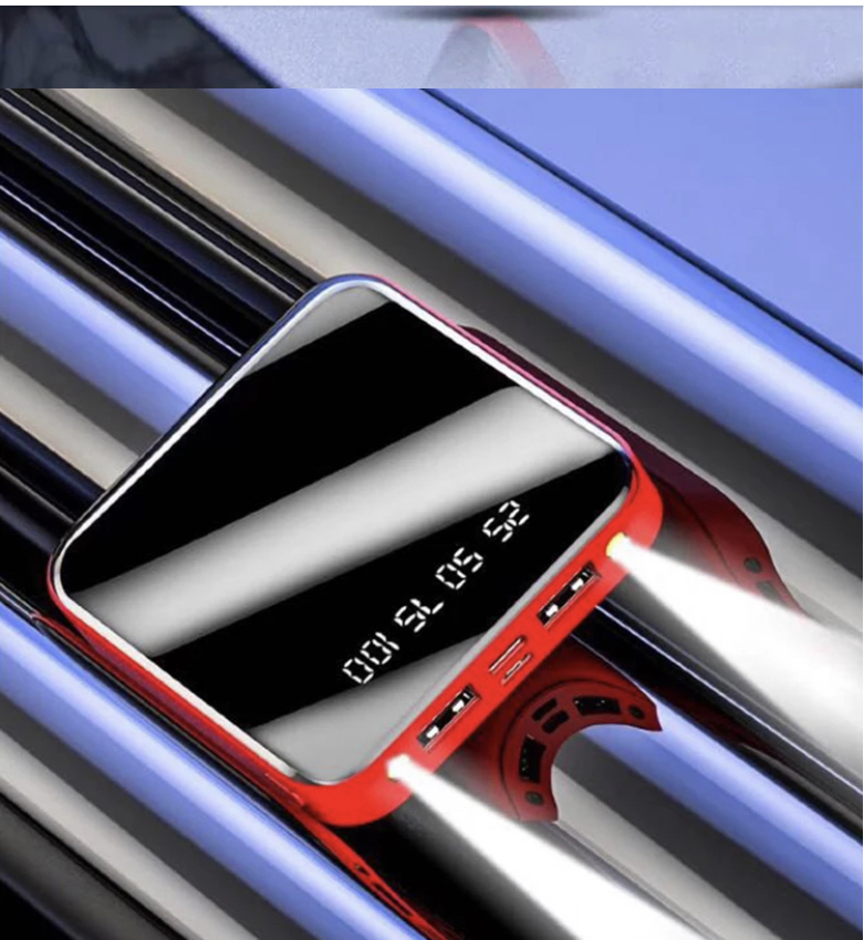 > Screen shows energy state of the power bank