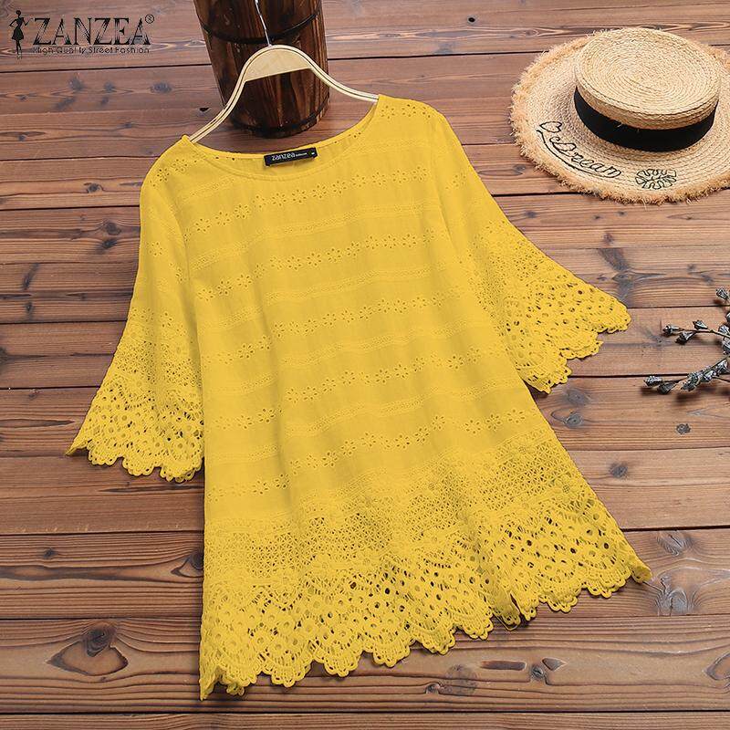 Rulfepy Womens Embroidery Blouse Casual Loose Tops Lace Up Shirts Plus Size ZANZEA