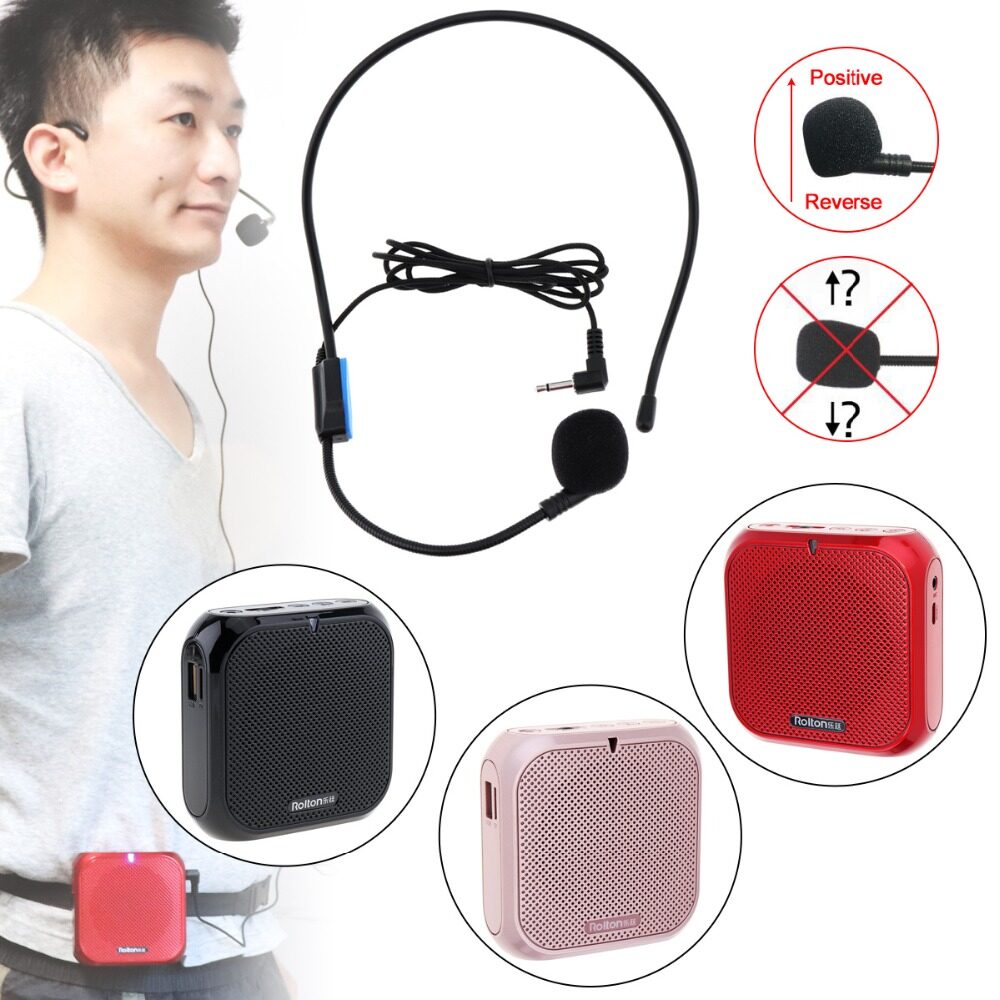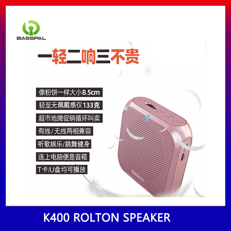 BassPal Rolton K400 Wired Mini Audio Speaker Megaphone Voice Amplifier Loudspeaker Microphone Waist Band Clip Support FM Radio TF MP3 for Teacher coach speech Training Shop selling