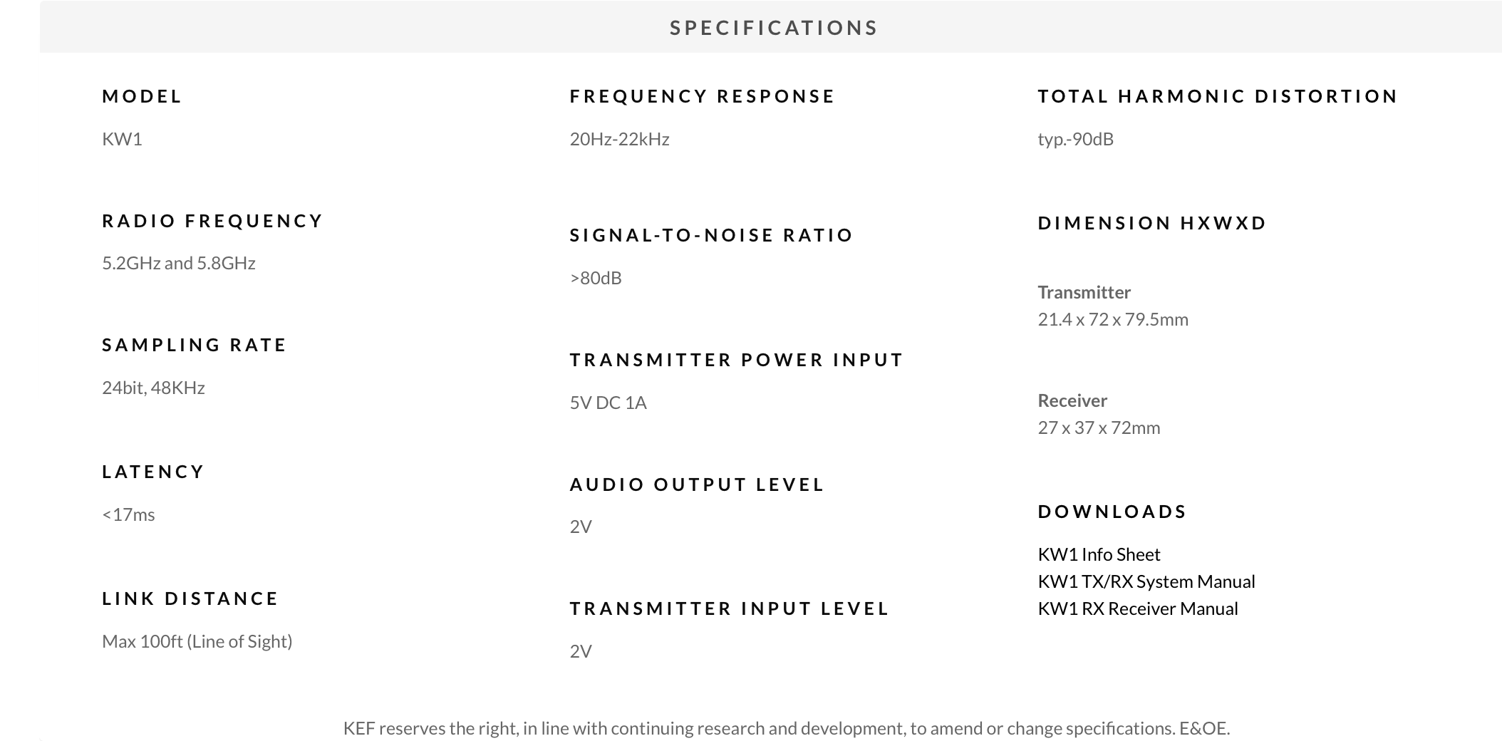 KEF KW1 Wireless Subwoofer Adaptor Kit