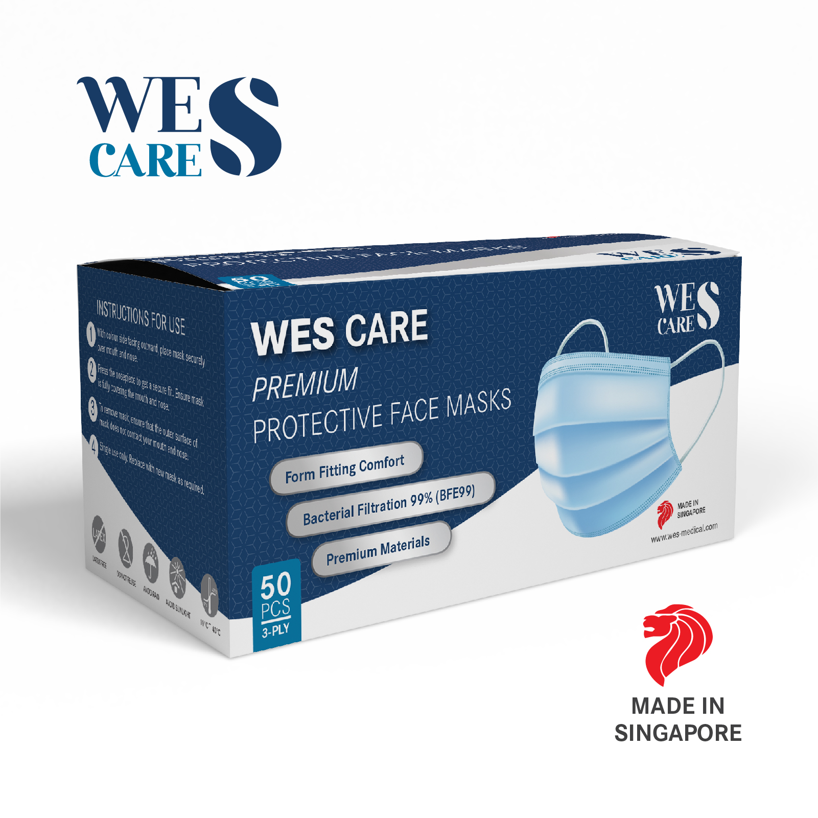 [OFFICIAL STORE] GET ADDITIONAL % OFF Blue Wistech 3 Ply Surgical Face Mask, 50 pieces, HSA Notified Medical Device, 99% BFE FDA CE Approved, Medical, Fast delivery, Delivery from Singapore, Manufactu