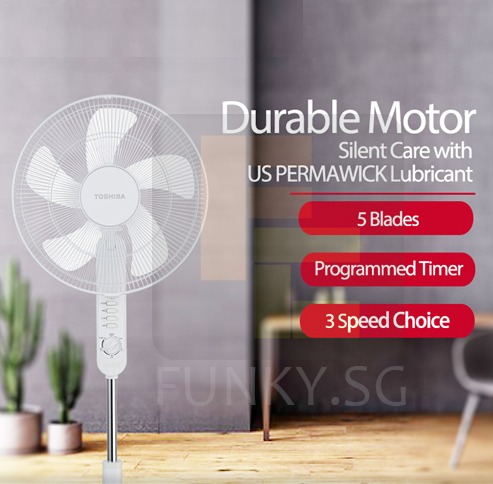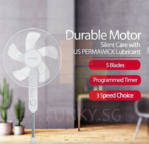 TOSHIBA 16" Stand Fan With Timer F-LSA10(W) with 1 Year Toshiba Warranty