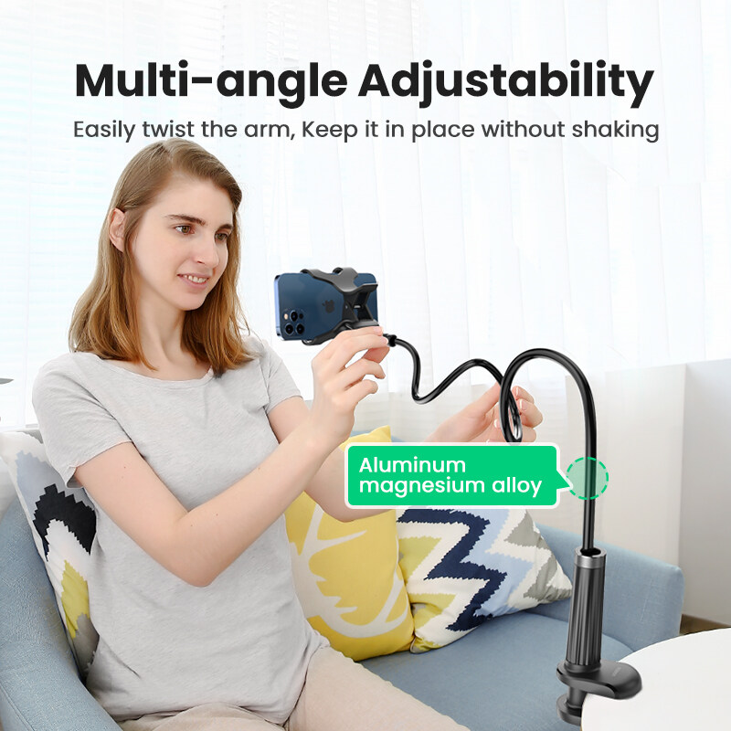 UGREEN Mobile Phone Holder for OPPO, VIVO, SAMSUNG, Realme, Huawei, Xiaomi, Redmi Arm Lazy Mobile Phone Goosneck Stand Holder for iPhone 8/X Flexible Bed Desk Table Clip Bracket for Smartphone