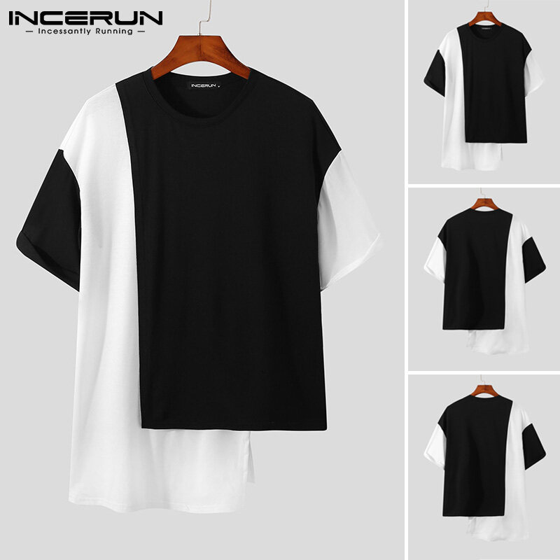 Medussa INCERUN Mens Short Sleeve Irregular Hem T-shirt Casual Loose Asymetric Blouse Tops Tees