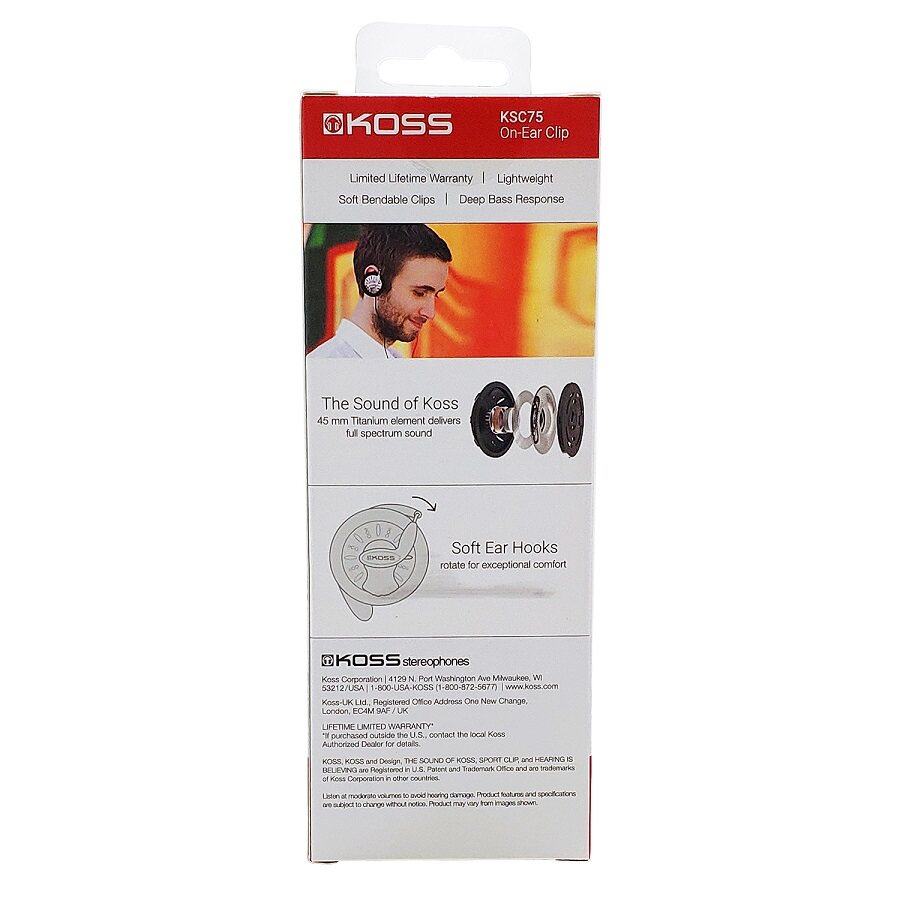 Koss KSC75 Portable Stereophone On Ear Clip Headphones Features