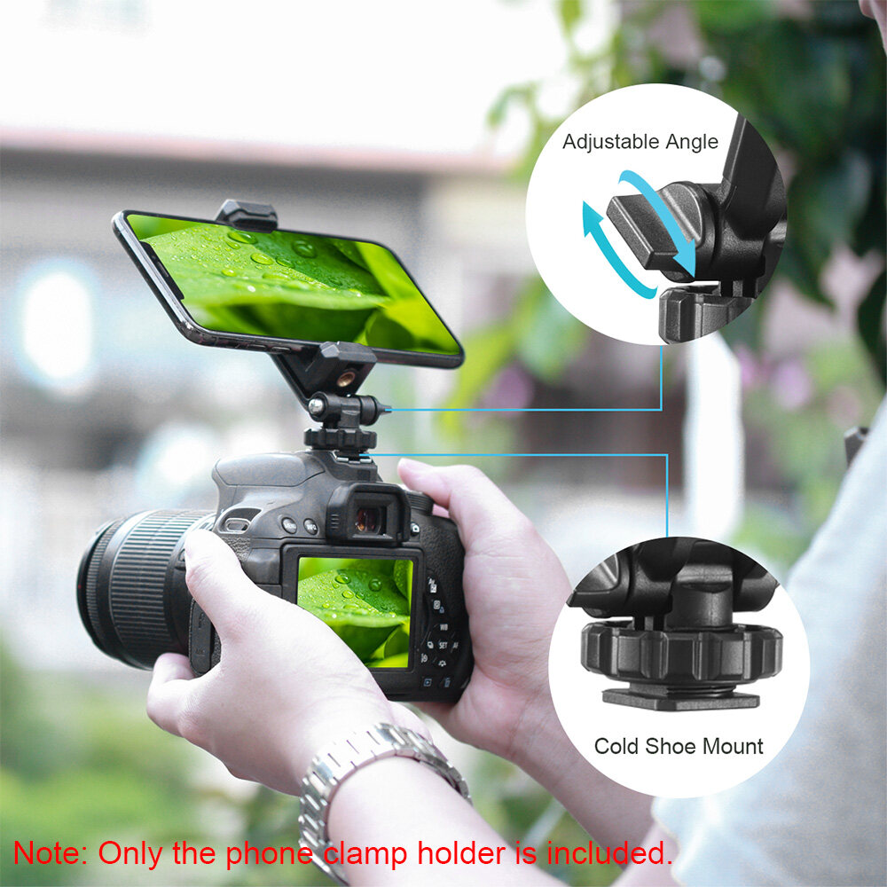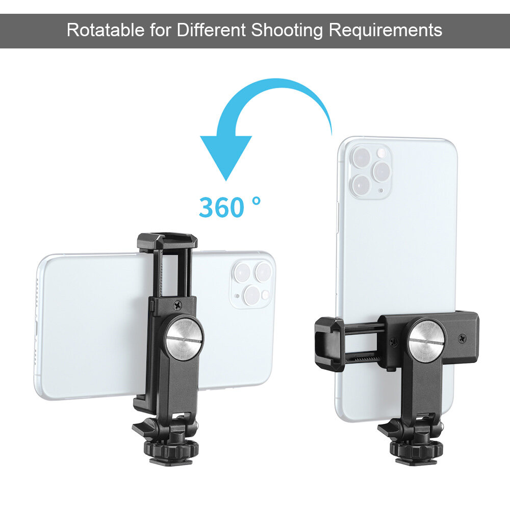 Andoer Rotatable Phone Holder Clamp Clip Mount Adapter with 1/4 Cold Shoe Mount 360 Degree Rotatable for Smartphone Microphone LED Light Video Making