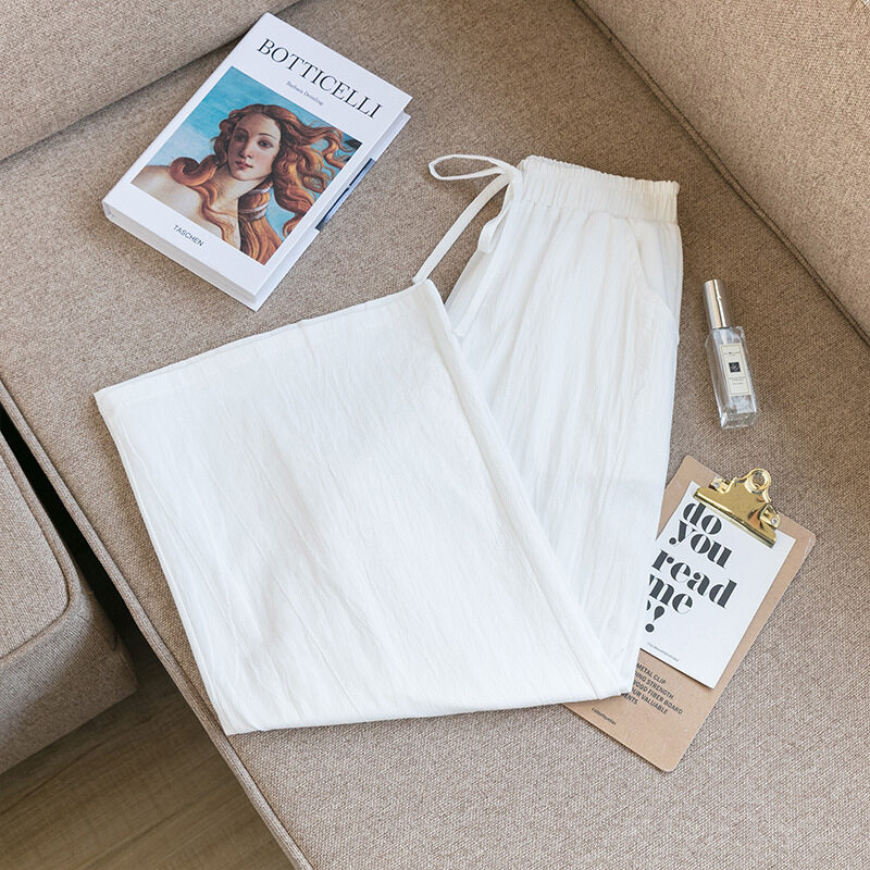 2021 Summer Women Casual Wide-leg Pants Women's Plus Size Loose Cotton Linen Nine-Point Straight Trousers Ladies Home Wear Pants Solid Color Office Work With Pocket Pants Korean