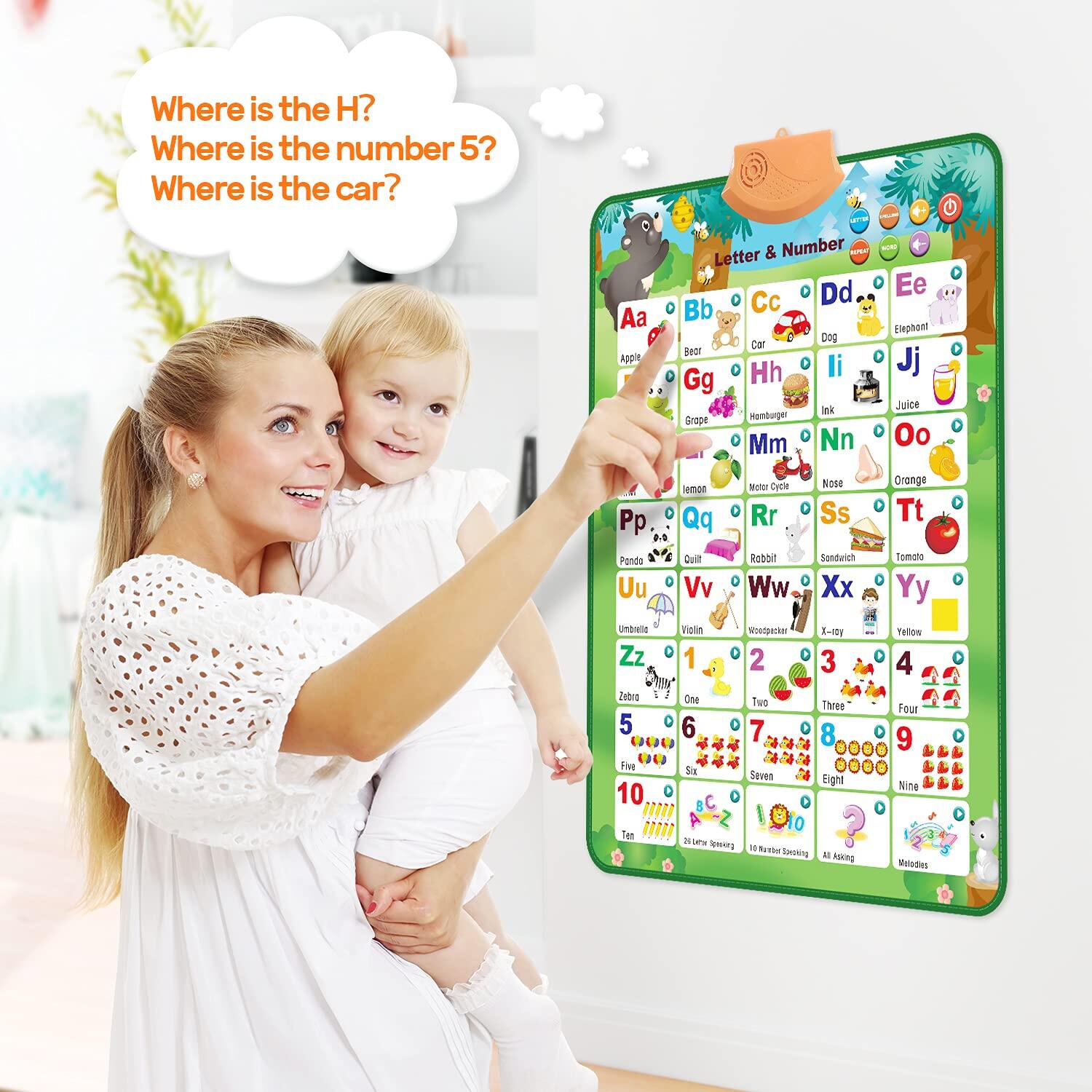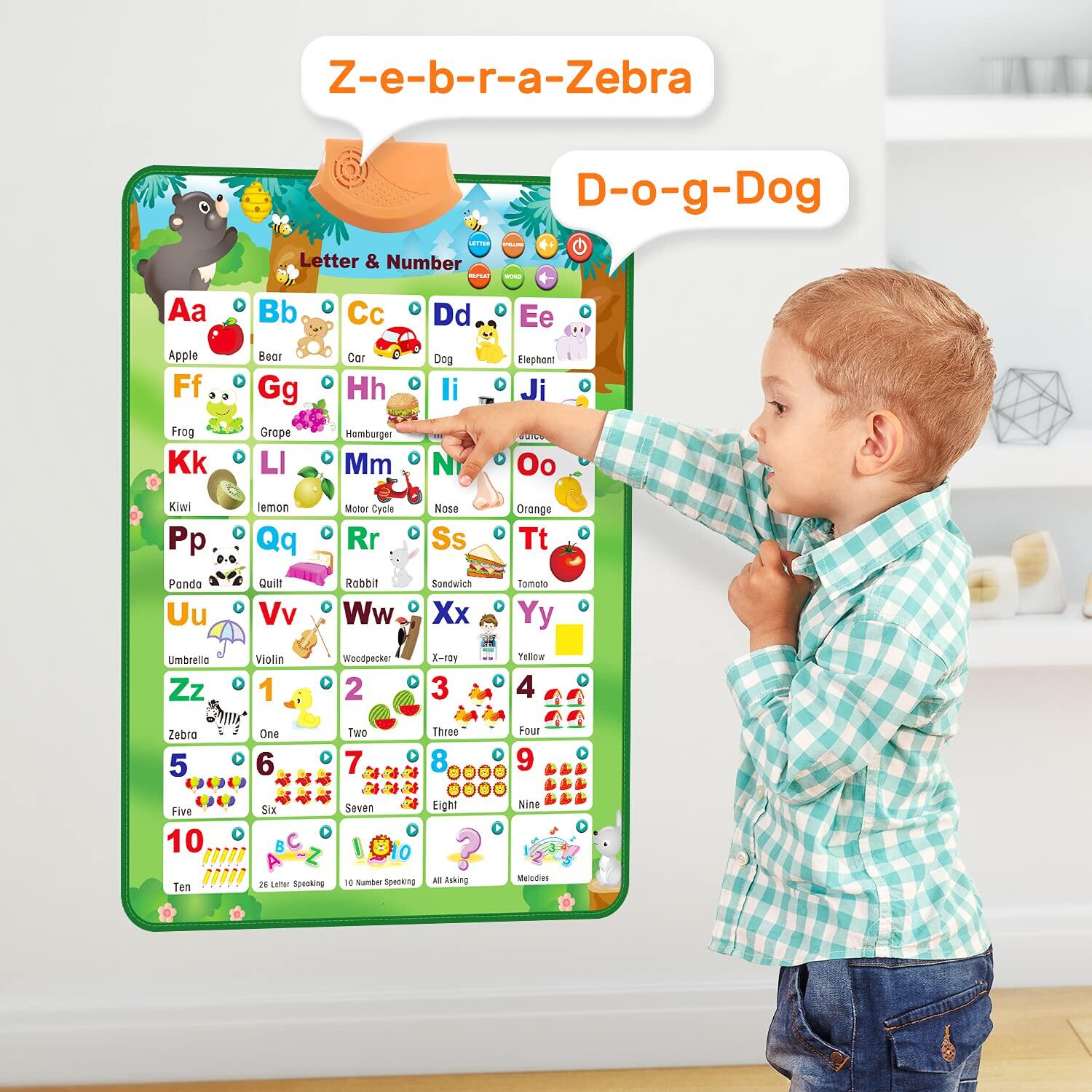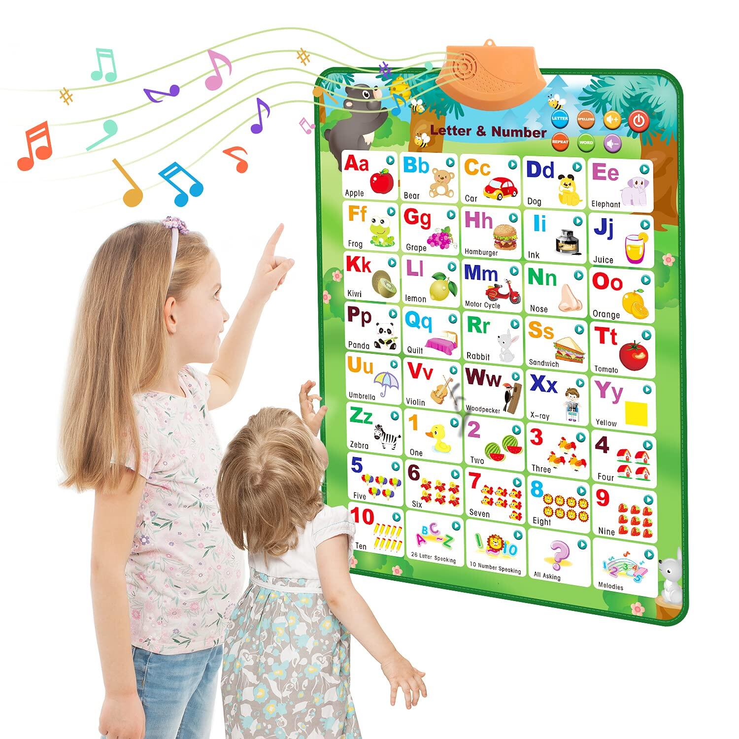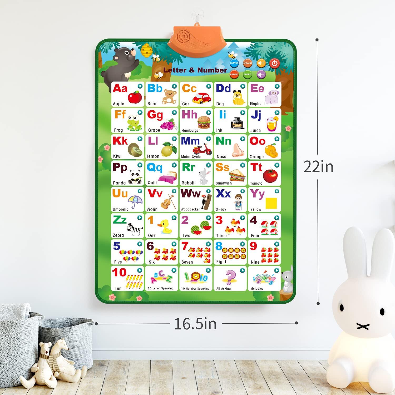 Electronic Interactive Alphabet Wall Chart, Talking ABC & 123s & Music Poster, Best Educational Toy Gifts for Toddler,Kids Fun Learning for Boys & Girls