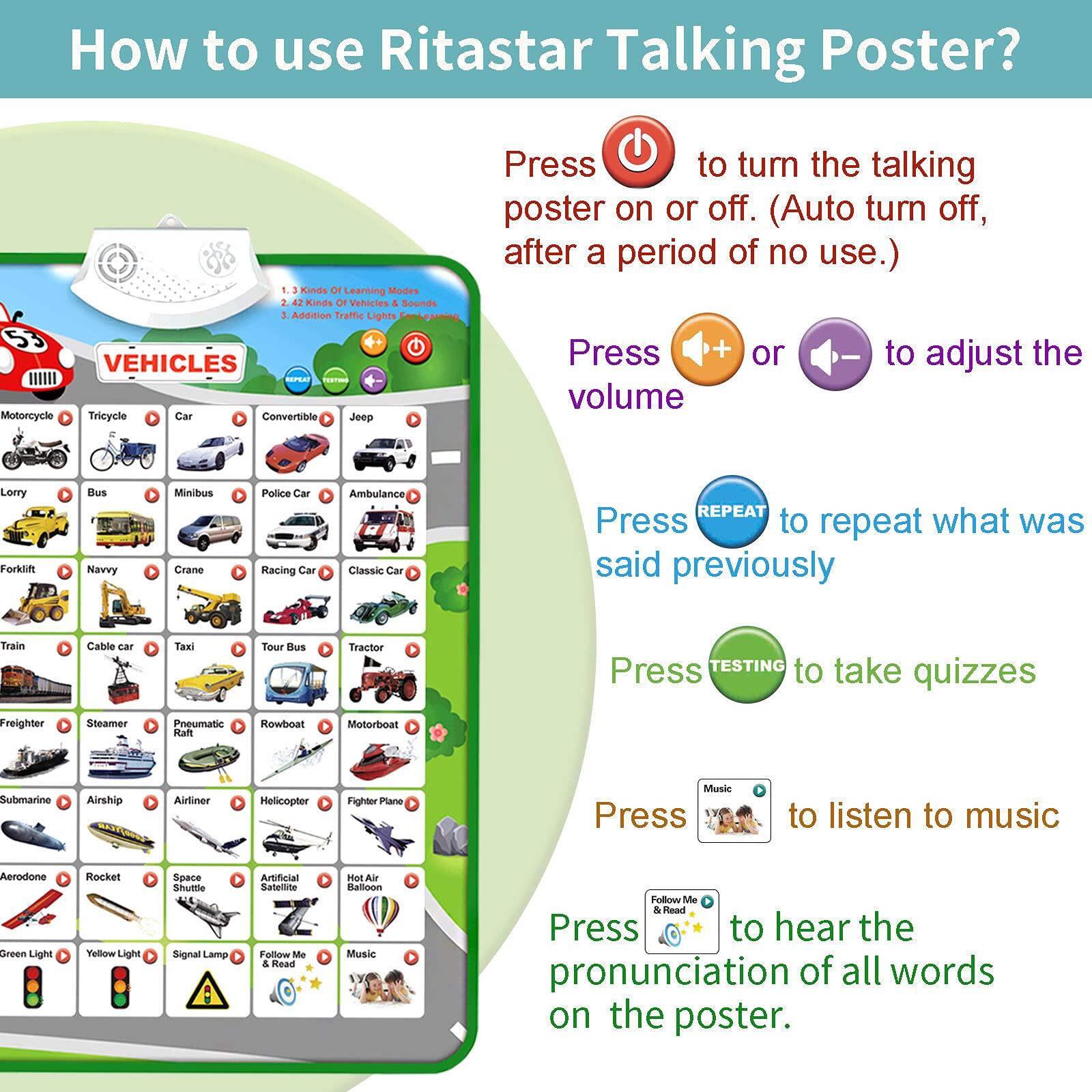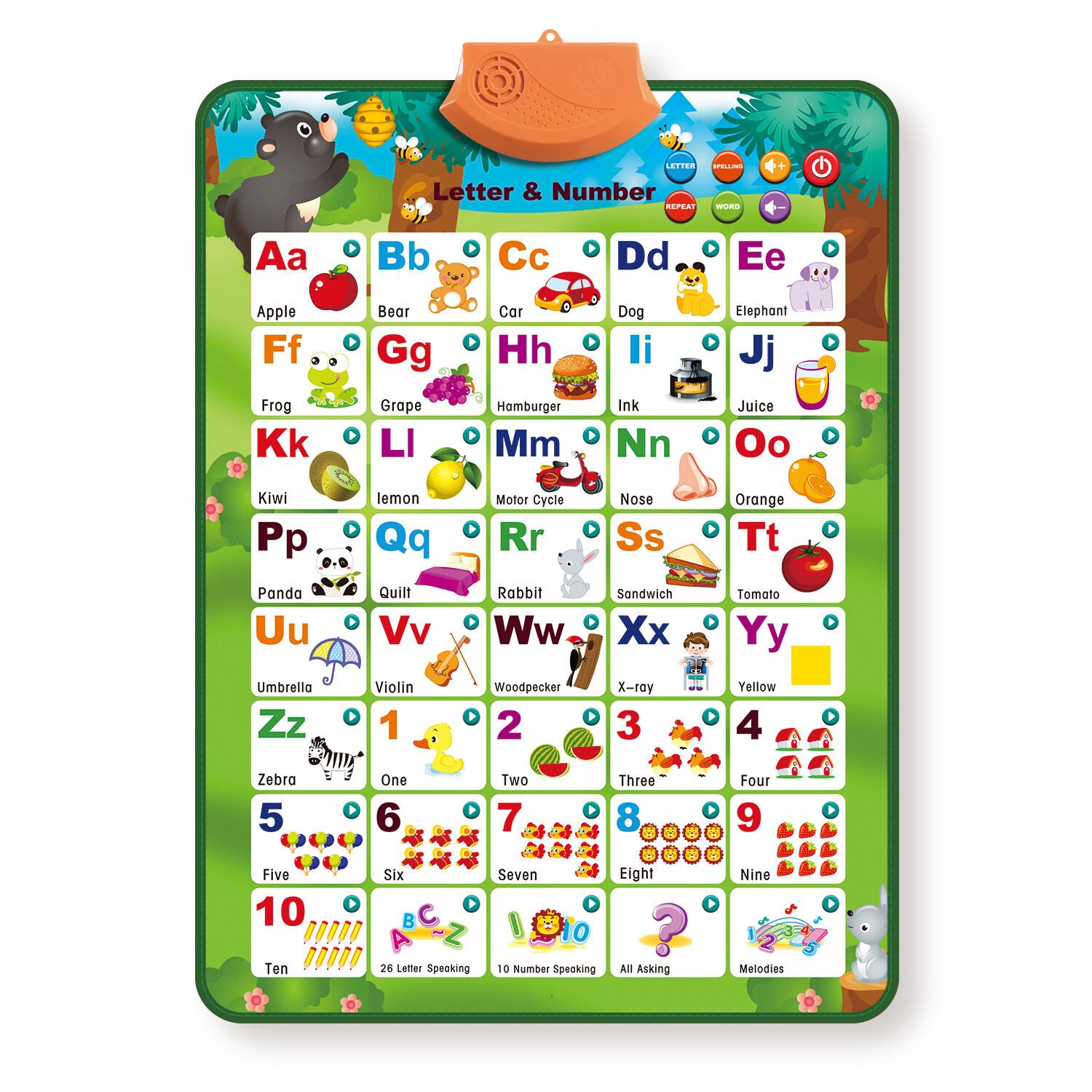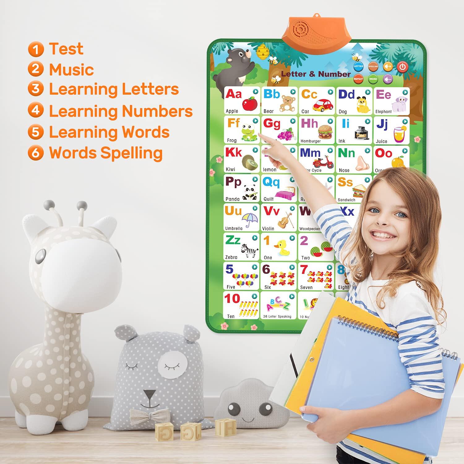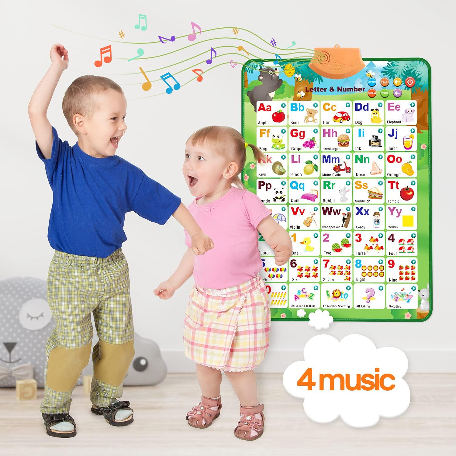 Electronic Interactive Alphabet Wall Chart, Talking ABC & 123s & Music Poster, Best Educational Toy Gifts for Toddler,Kids Fun Learning for Boys & Girls