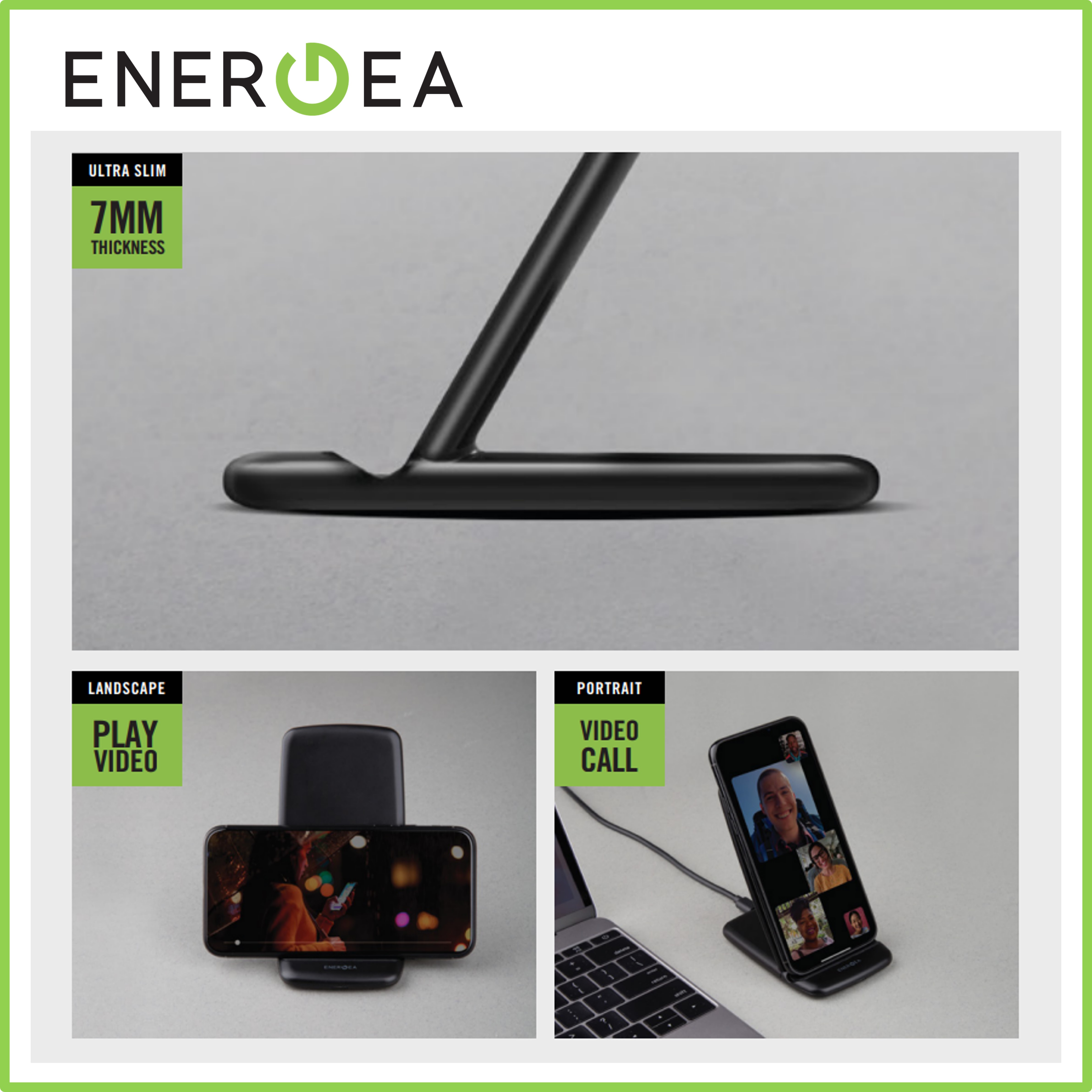 Energea Widock Air 2-Coils Fast Wireless Charger Charging Stand 5w/7.5w/10w Black
