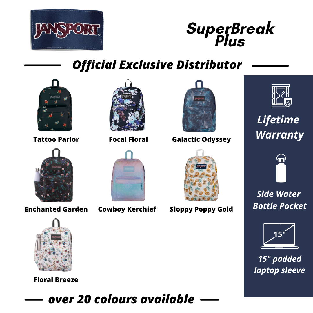 DETAILSThe SuperBreak Plus is a fresh take on the classic SuperBreak pack with an internal laptop sleeve and side water bottle pocket, making this pack as functional as it is far out.