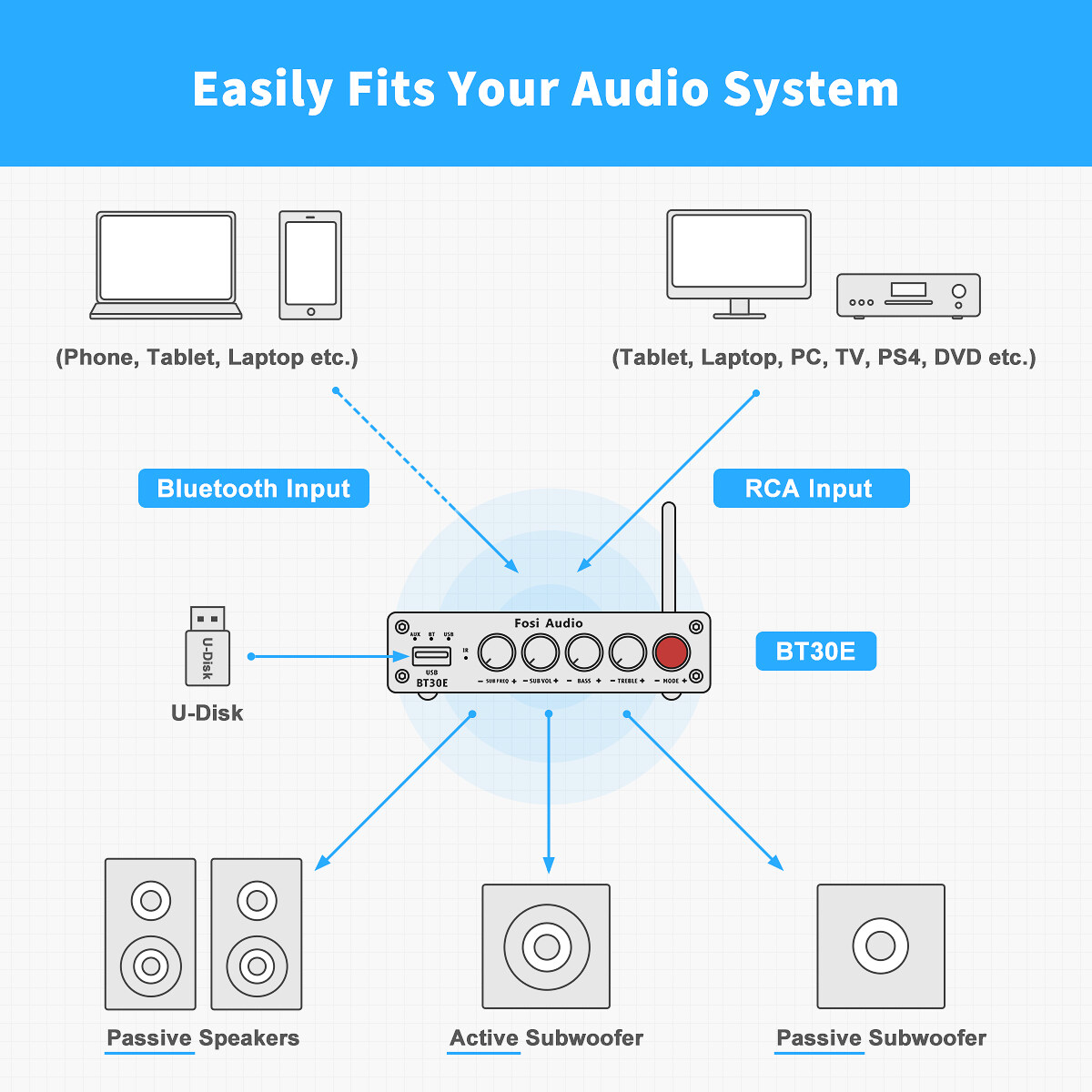 Input mode: U-disk/Bluetooth/RCA