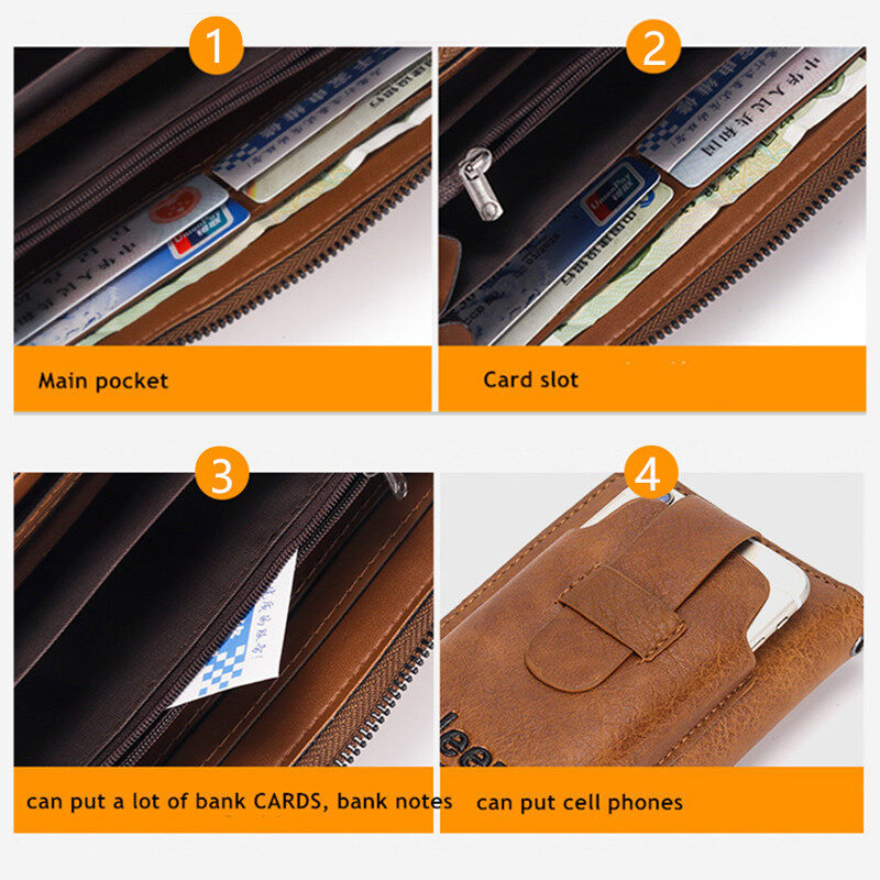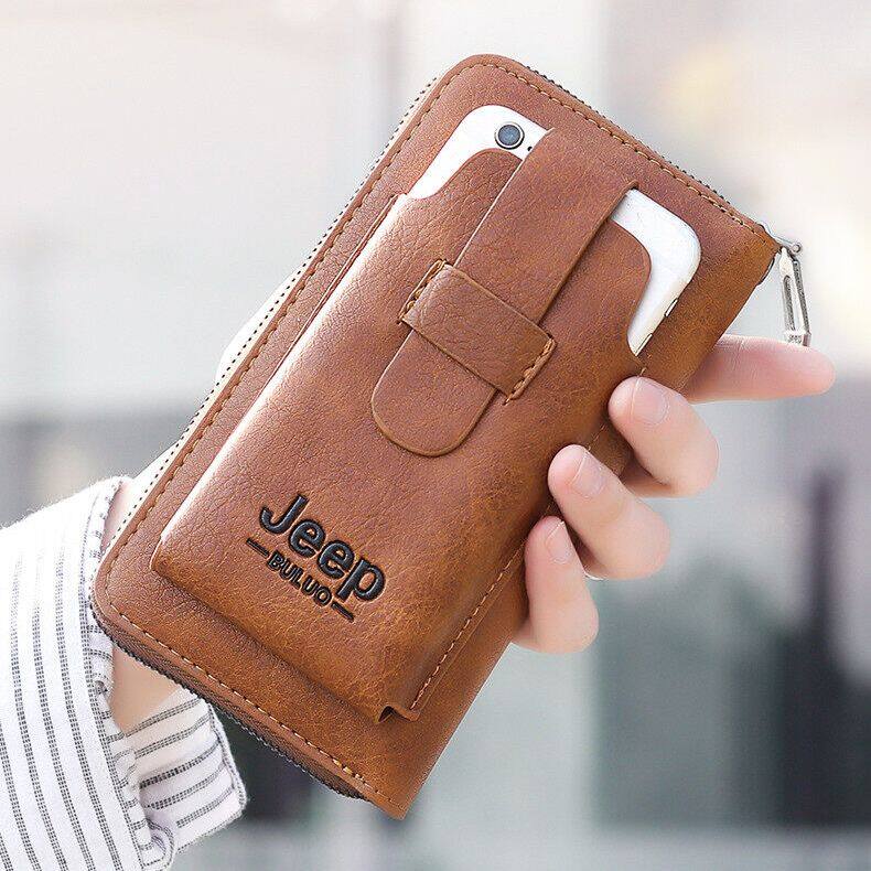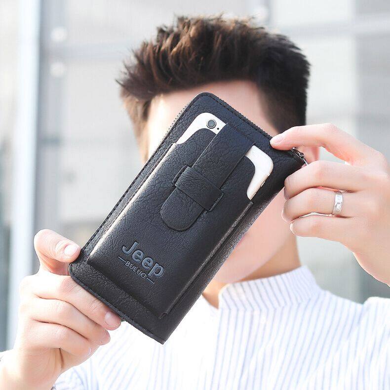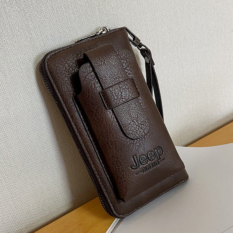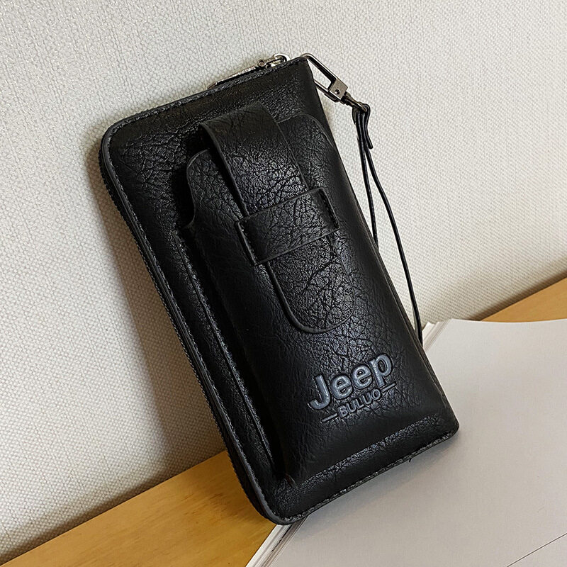 JEEP BULUO 2022 new men's hand bag large-capacity multi-card men's mobile phone bag single zipper portable men's bag wallet