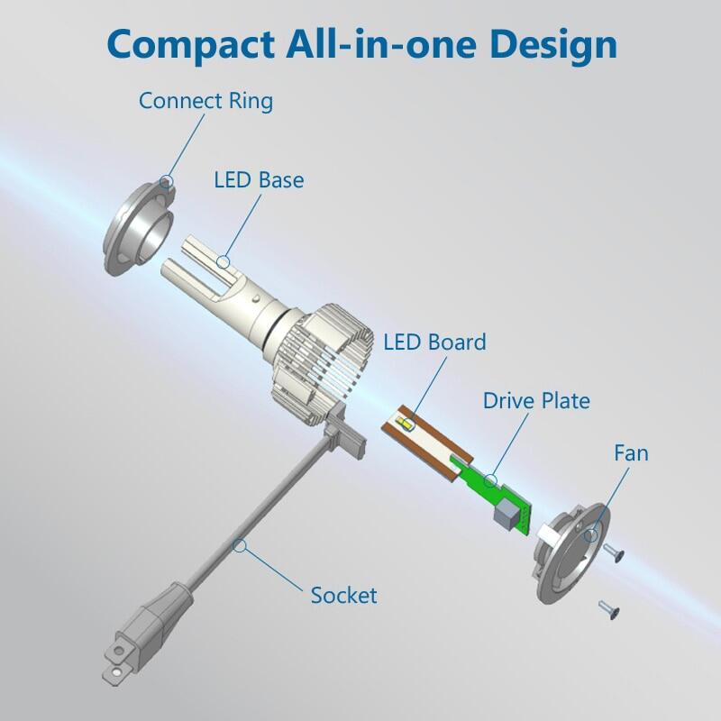 | Fitting | H1, H4/9003, H7, H11, 9005/HB3, 9006/HB4, 9012/HIR2, H8/H11/H16 fog |
