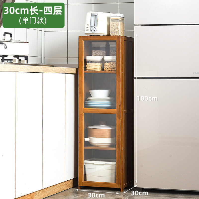 Kitchen Supplies Storage Cabinet Floor Multi-Layer Multi-Functional Storage Rack with Door Kitchenware Tableware Locker Bookshelf Wood