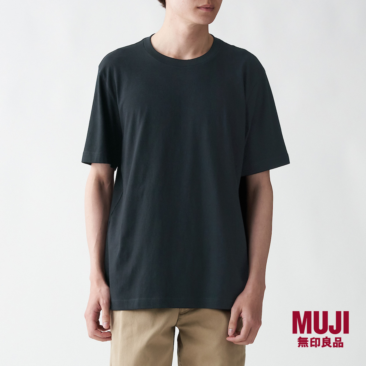 MUJI Men Indian Cotton Jersey Stitch Crew Neck Short Sleeve T-Shirt