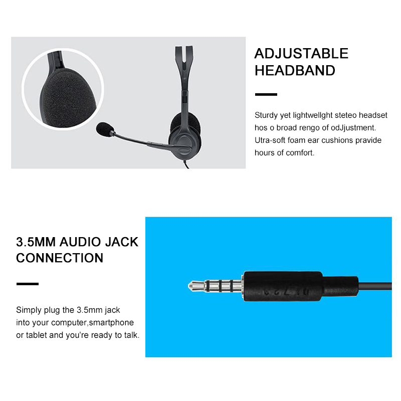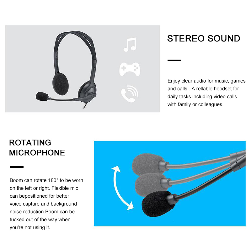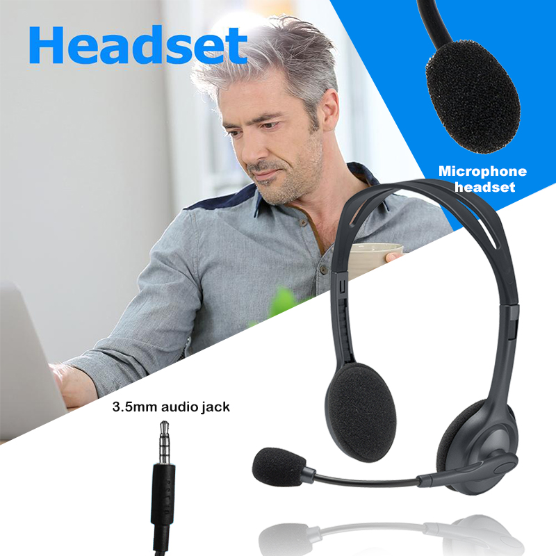 Logitech H111 Wired Headset Stereo Headphones Noise-Cancelling Microphone Earphone PC/Mac/Laptop Headphone Rotating MIC