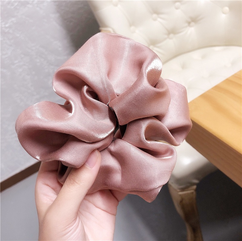 [SG | Fluffy] Vintage Pearly Light Silky Satin Big Scrunchies Women Hair Ties - Big Scrunchy Hair Bands Elastic Hair Accessories Soft Large Scrunchies For Girl Women