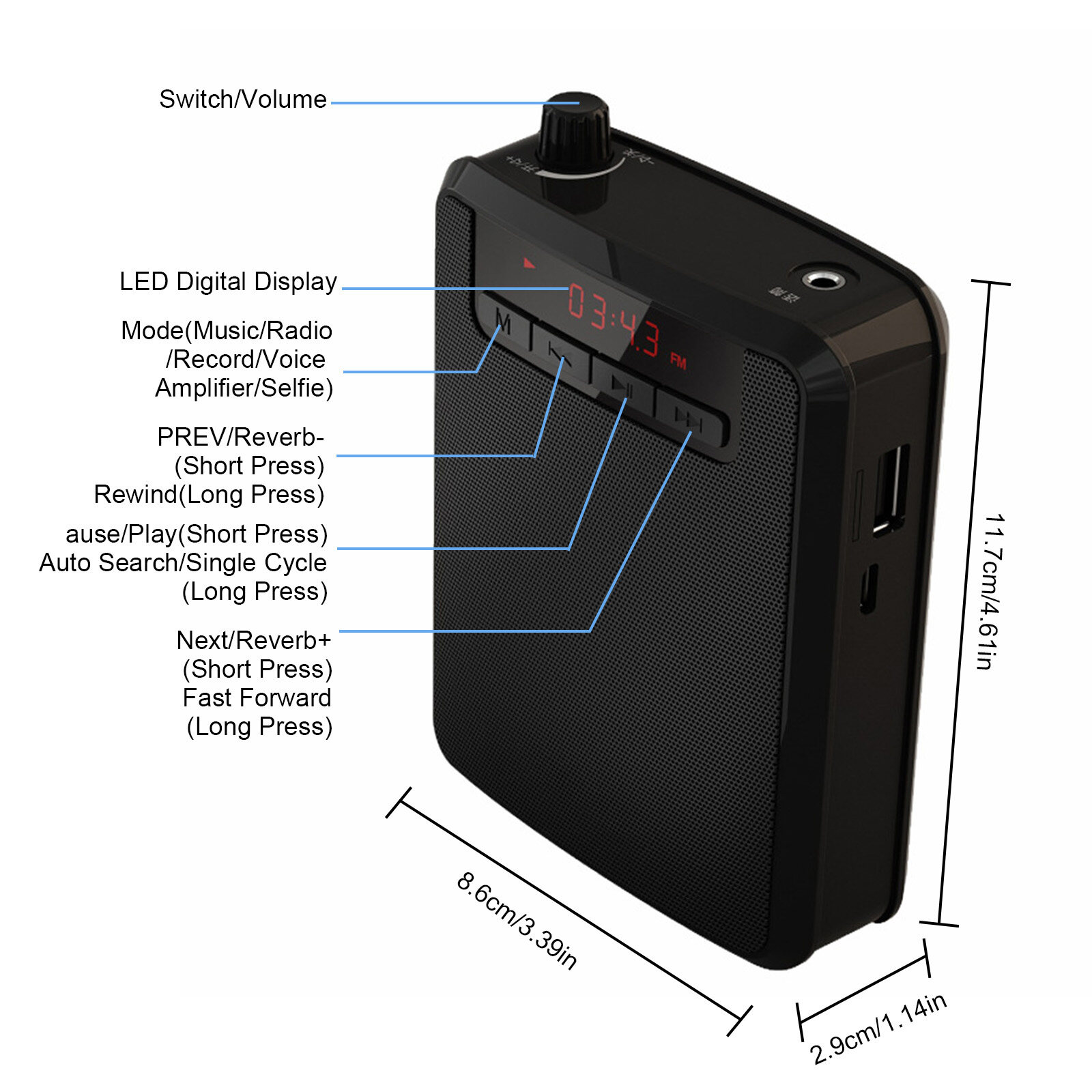 Applications: With adjustable belt and detachable belt clip and wired headset microphone, it is suitable for teaching, coaches, singers, training, tour guides, shopping malls and outdoor speeches, etc.