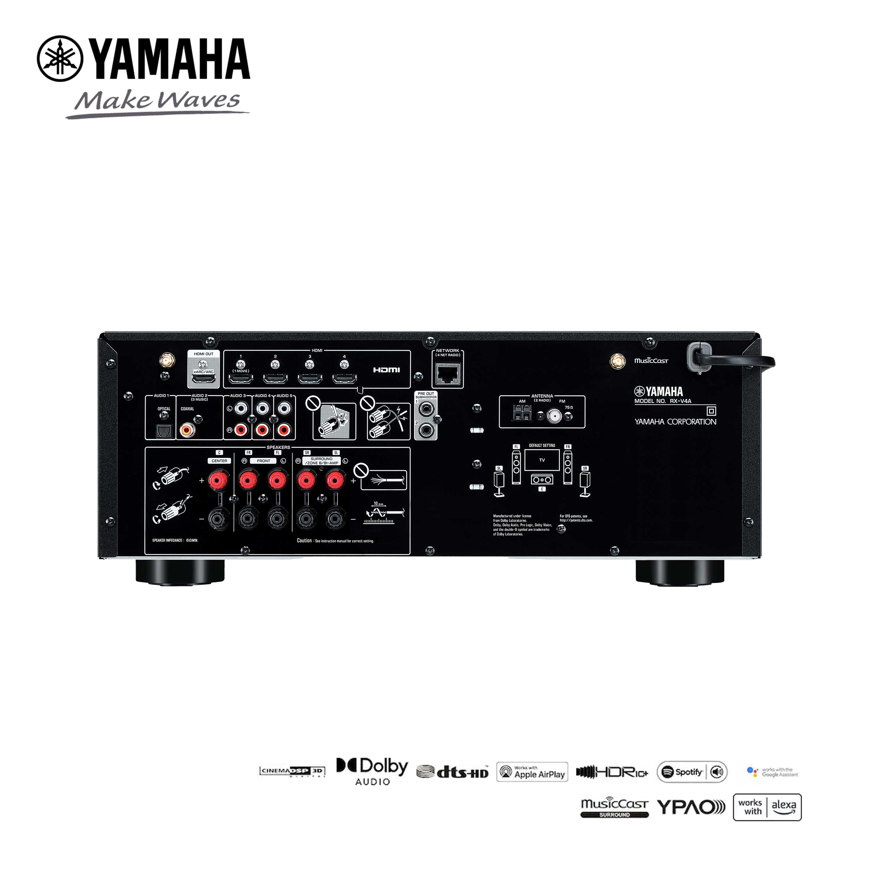 Yamaha RX-V4A 5.2 Channel AV Receiver with CINEMA DSP 3D, HDMI™ 4-in/1-out and Wireless Surround Sound