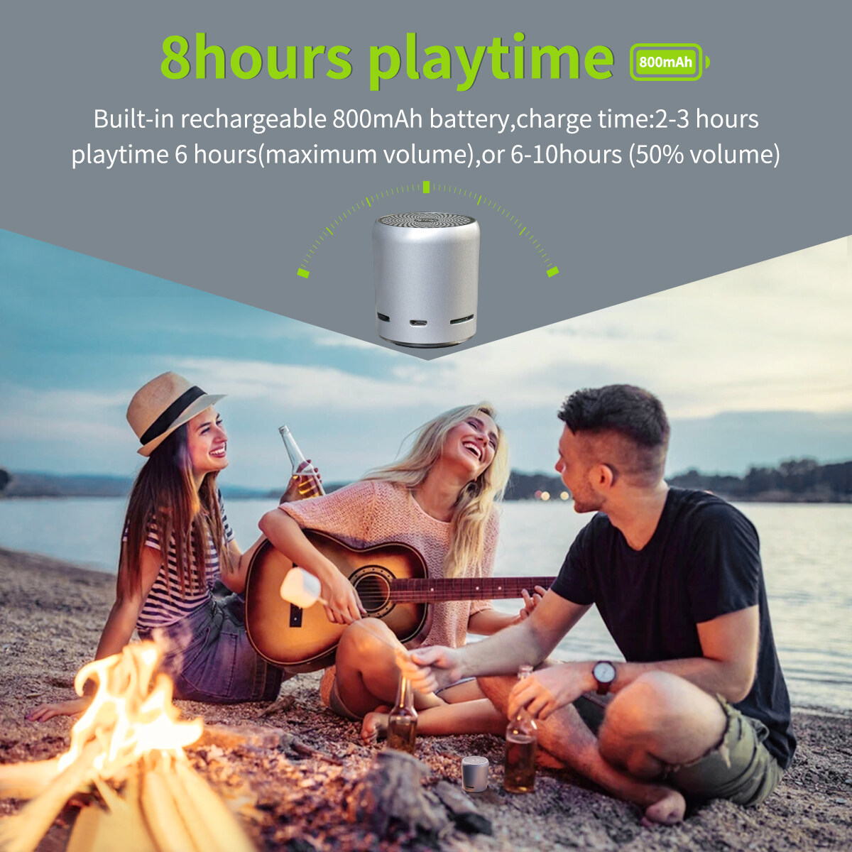 High-performance Li-ion battery ensures up to 8 hours of high quality sound. ( at 50% volume )