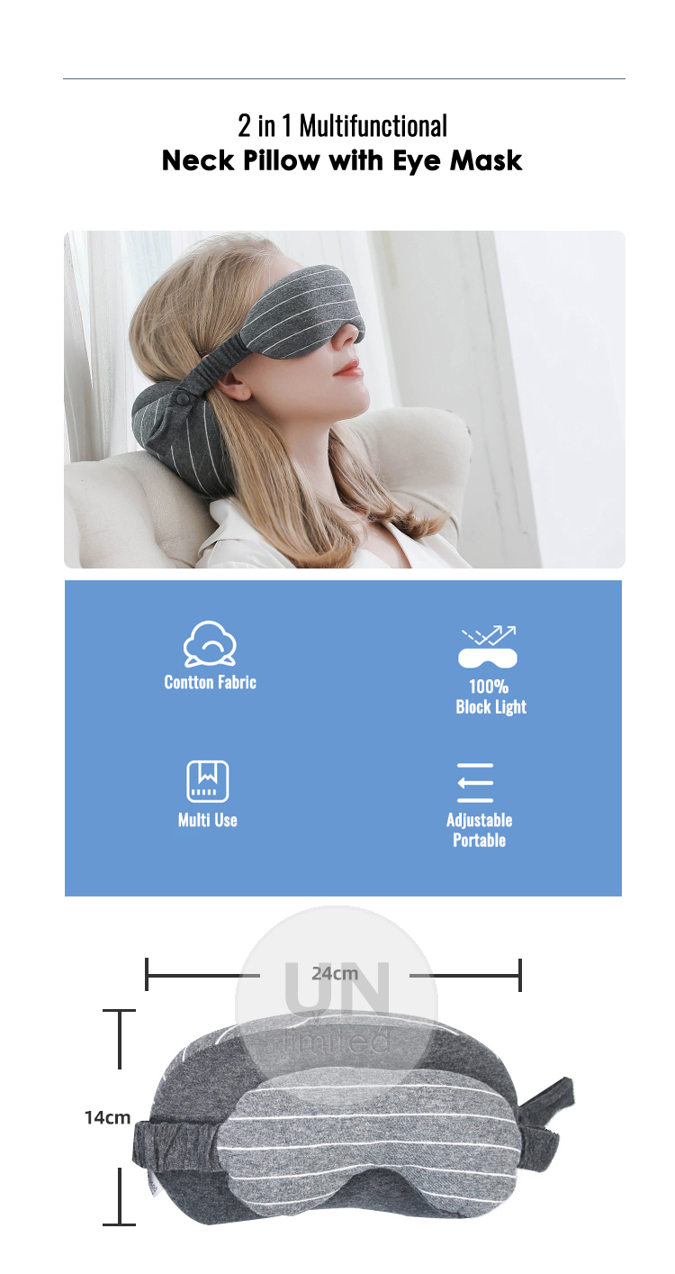 【2 in 1】Multifunctional Neck Pillow with Eye mask / Foam Particles Filling / Great for Travel Office / Memory Foam Back Pillow / Support Cushion