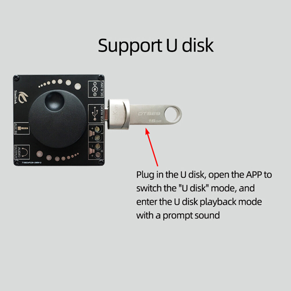 USB flash drive playback is supported. Plug in the USB flash drive, open the APP and switch to the "USB flash drive" mode, accompanied by a prompt sound, and enter the USB flash drive playing mode