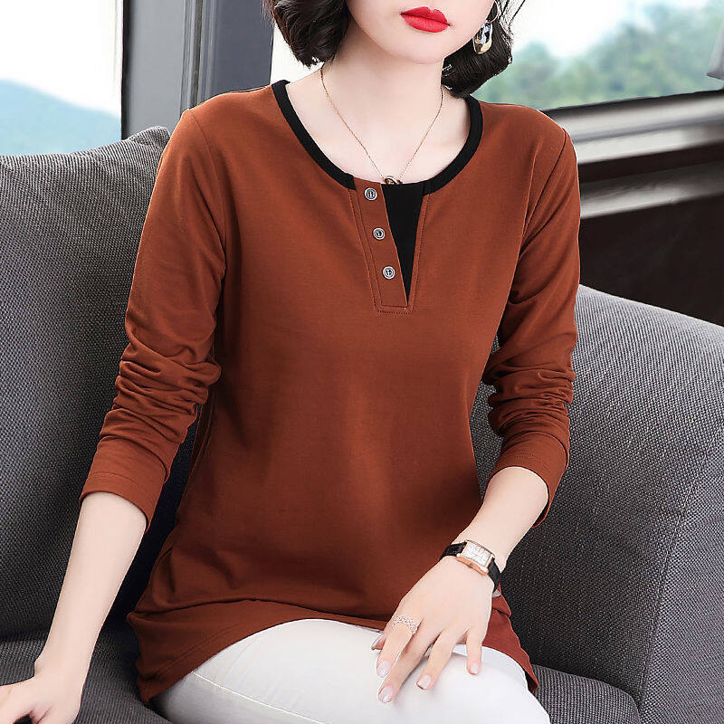 Fashion Long-sleeved Cotton T-shirt For Women's Autumn And Spring Casual Korean Style New Design Bottoming Top Tee