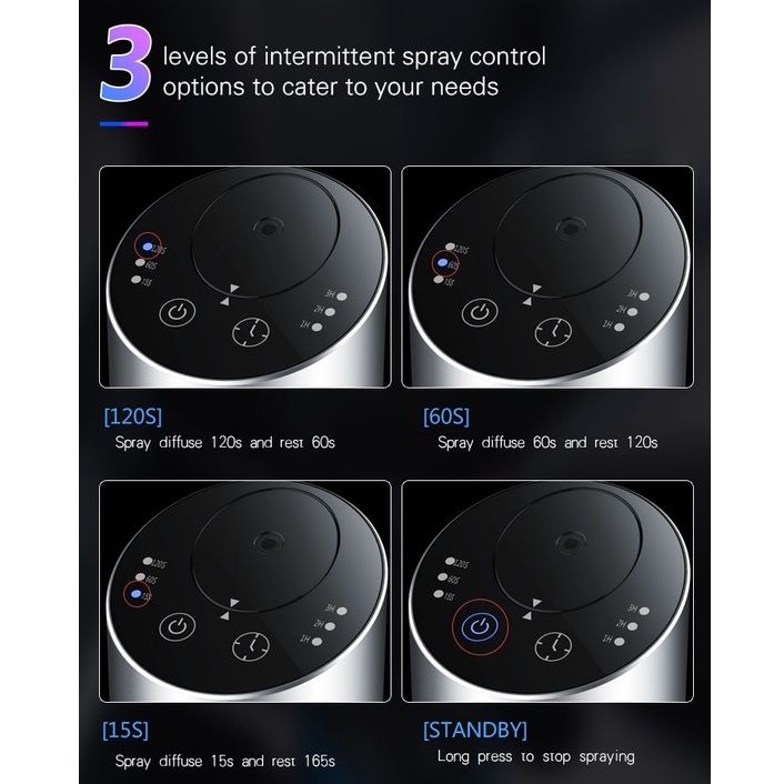 - The diffuser adopts the latest cold spray technology, there is no need to add water or heat it up. It directly atomizes the essential oil into 1-3 nanoparticles and sprays it out from the nozzle. With this technology, it doesn’t destroy the molecular structure of the oil, making it easier to be absorbed by the human body, helping to boost your energy levels & immune system, improve quality of sleep & ability to focus, soothe your mood & relieve stress, create calming & comforting atmosphere, eliminate headaches & reduce chronic pain & more! - Superior Aromatherapy Experience. No Water. No Heat. Just 100% pure oil diffusion aromatherapy - Multiple location use. It can be used in a car, kitchen, bathroom, living room, bedroom, etc - Touch screen panel, enabling easy control - Removable nozzle design. Easy to clean - USB charging, easy and convenient - Rechargeable (including battery), it takes 2-3 hours to fully charge the diffuser, a fully charged diffuser can work continuously for 10 hours Product Specifications: - Dimension: 69x69x135mm - Material: Aluminium Alloy - Battery Capacity: 2000mAh - Charging Volatge: DC5V1A - Suitable Essential Oil Bottle Size: 10/15/20ml (20ml Bottle Provided) - USB Length: 100cm - Wattage: 3W - Capacity: 20ml - Weight: 390g FAQ: - How long does it take to fully charge the diffuser? A: 2-3 Hrs - What type of essential oil does the diffuser use? A: Pure essential oil or high volatile oil without impurities - Why not be able to see the mist? A: It’s normal, the mist particles are only in 1-3 nanoscale, which is difficult to be seen by eyes. However, using a phone torchlight can be helpful to see the mist. Alternative you may use your hand to block the outlet you will feel the diffuser pressure. - Can I use another essential oil bottle? A: Yes you may use a standard screw thread essential oil bottle which a diameter lesser than 30mm, bottle height lesser than 72mm. However, we do have provided a 20ml bottle you may refill it or use your preference bottle. What's in the Box (Standard Package) 1 X Diffuser 1 X USB Cable 1 X Essential Oil Refill Bottle 1 X User Manual 1 Months Local Warranty *Terms and conditions applied * #AirPurifier # essentialoil #Gift #Aromatic #Moisturizing #Deodorization #Car #AirCleaner #Sprayer #Fragrance #Aroma #Aromatherapy #diffuser