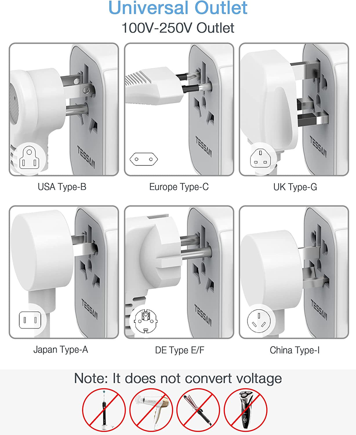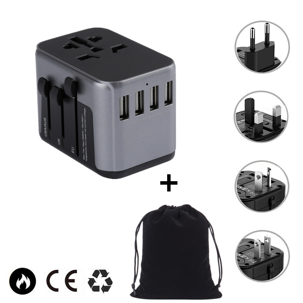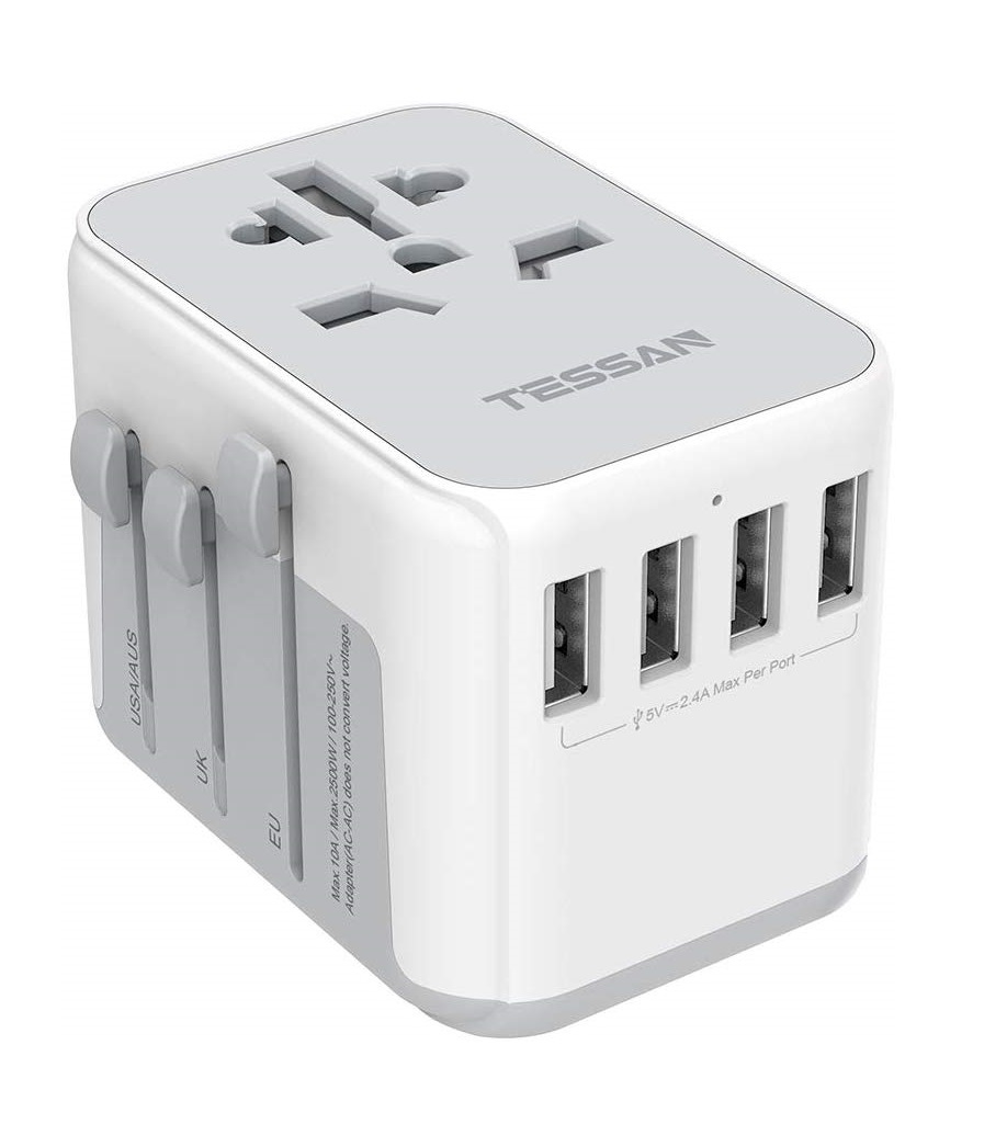 International Travel Adapter with 4 USB Outlets+1 Universal Outlets,TESSAN Universal Travel Adapter European Plug Adaptor Worldwide All in One USB Charger Converter Travel Plug USB Charger Power Adapt