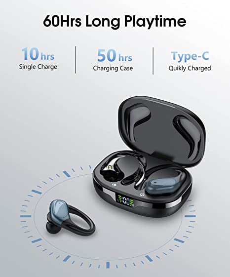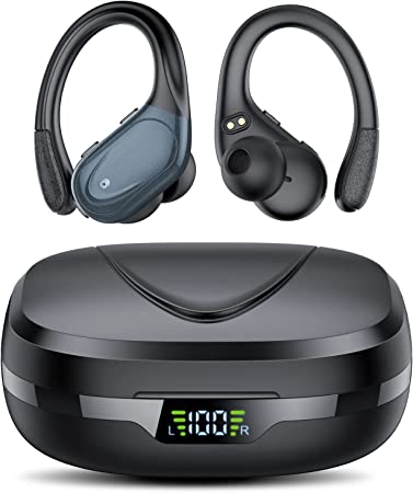[2022 NEW] COTIN X17 Wireless Earbuds with Earhooks, Bluetooth 5.1 Earphones for Sports, in-Ear Detection, HiFi Stereo Deep Bass Sound & CVC 8.0 Microphone, IPX5 Waterproof, 35H Playtime for Running,