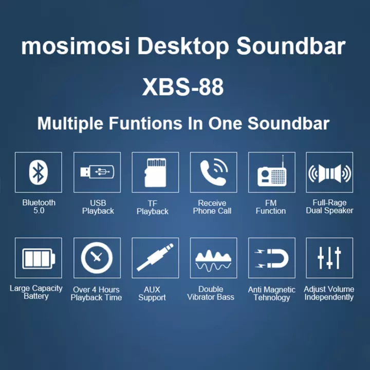 【Hot sell】mosimosi New Desktop Soundbar XBS-88 Bluetooth 5.0 / 10W Full Power Sound Bass