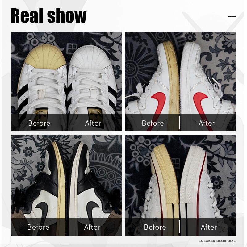 This deoxidize cream is for sneaker footwear removing oxidation yellow stains on the rubber sole or toebox.