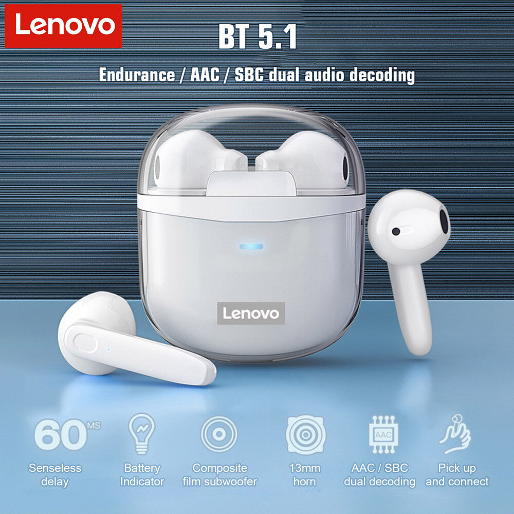 Lenovo XT96 Bluetooth 5.1 Headphone With Mic TWS Wireless Earbuds AAC Stereo Bass Headsets Noise Cancelling Earphones