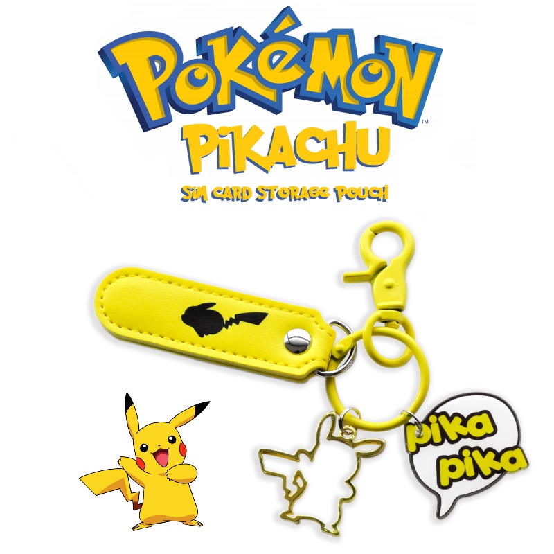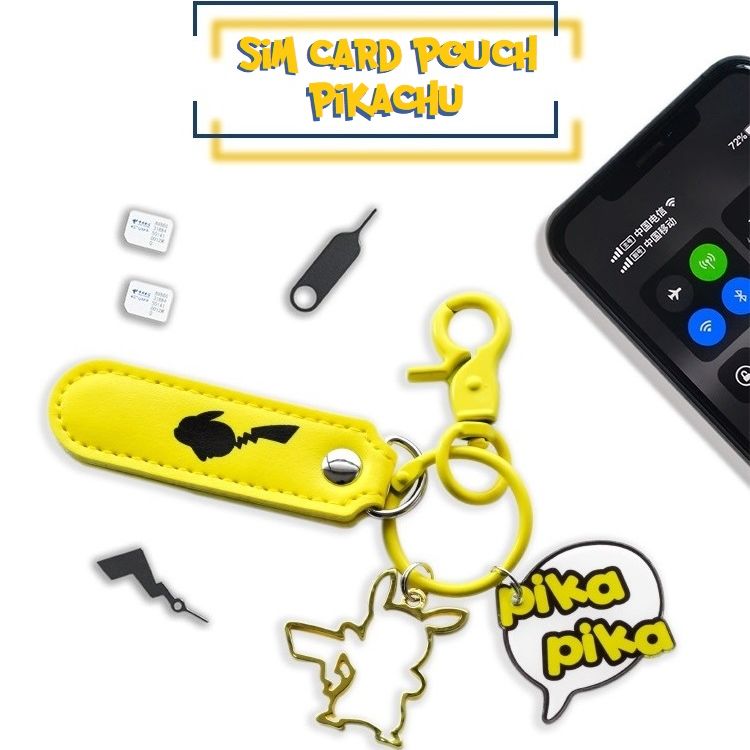 POKEMON Pikachu SIM Card TF Memory Card Holder Storage Pouch for Apple Android Phone c/w 2 Universal Sim Card Tray Eject Removal Pin