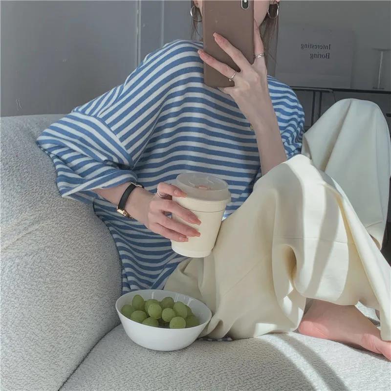 EDQRDQ Womens Striped Tops Plus Size Raglan Shirt 3/4 Sleeve Short Sleeve Striped Crew Neck Tshirt