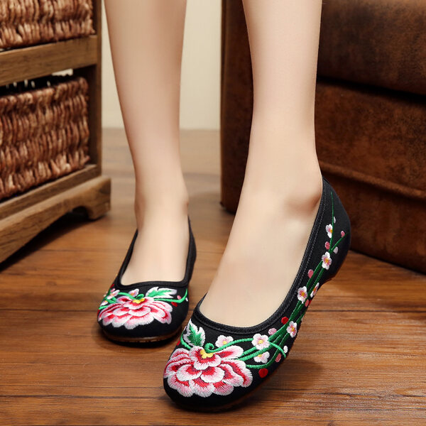 new style ankle-wrapped peony old Beijing beef tendon bottom cloth shoes red black hidden height embroidered shoes dance Hanfu shoes autumn women