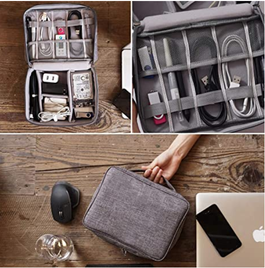 Lune Electronic Organizer Bag Power Bank Pouch 2 layers Large Capacity Storage Bag for Mobile power, Electronic Accessories USB Cable Charger Traveling Storage Bags