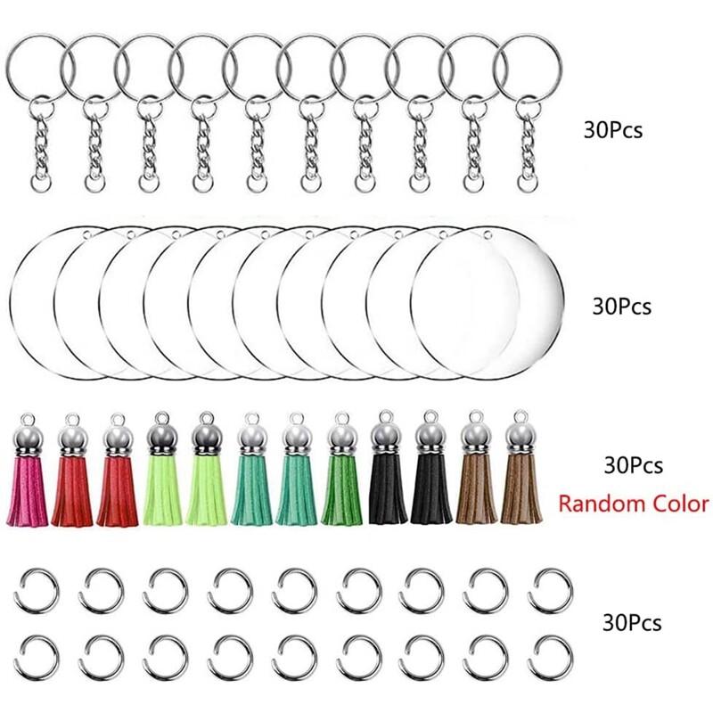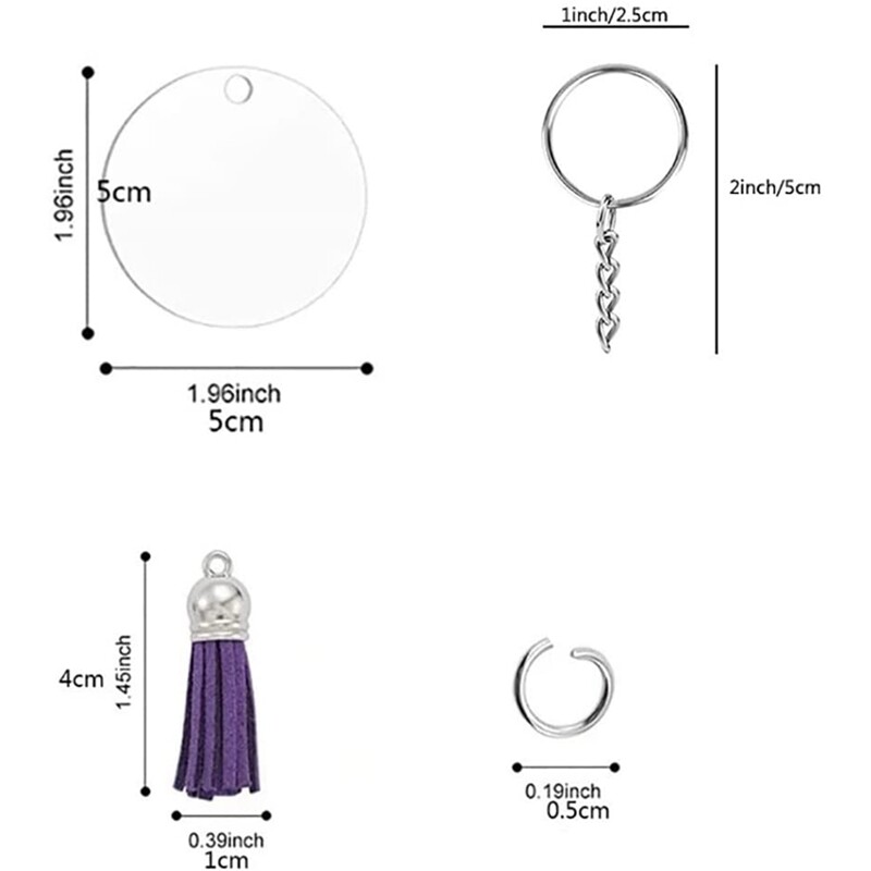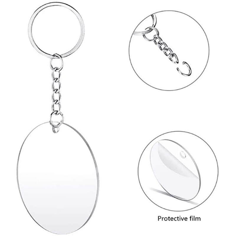 Acrylic Keychain Blanks Clear Round Keychain Acrylic Circle Blank Ornaments Set for Vinyl Crafting DIY Keychain Making