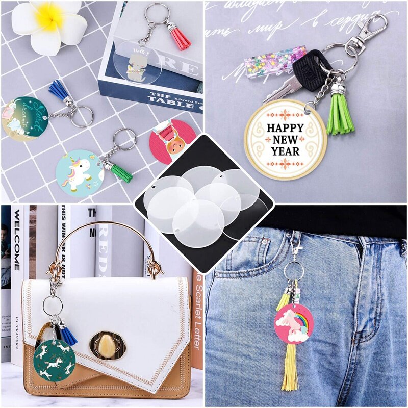 You can draw, carve, or paste your own favorite sticker on the acrylic circle keychain blanks and decorate with leather tassels to provide a charming look; They can be served as meaningful gifts for your friends, family, colleagues and they will like them All acrylic blanks are covered with protective films on both sides. This protective film can prevent the acrylic blanks from being scratched or soiled. The acrylic sheet should be peeled off when using it.