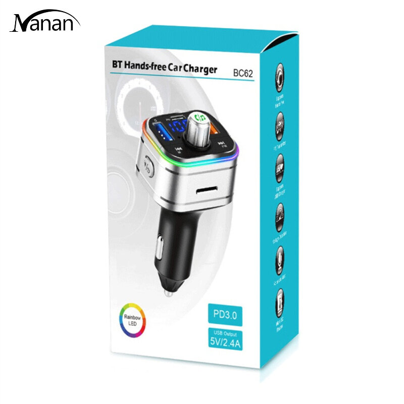 Bc62 Car Bluetooth-compatible Fm Transmitter Hands-free Calling Voice Assistant Atmosphere Light Voltage Detection Pd Fast Charger