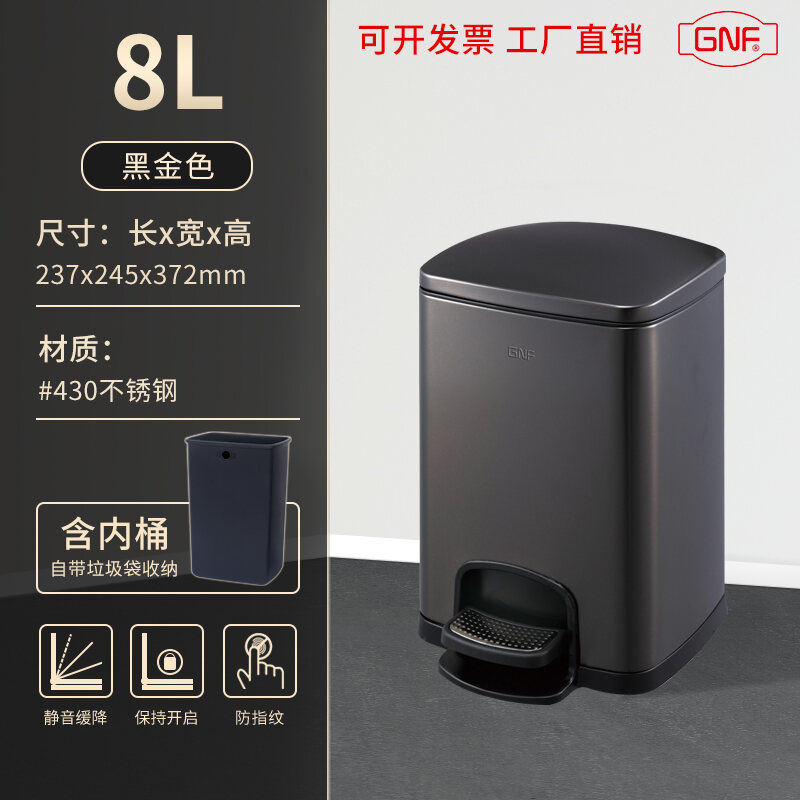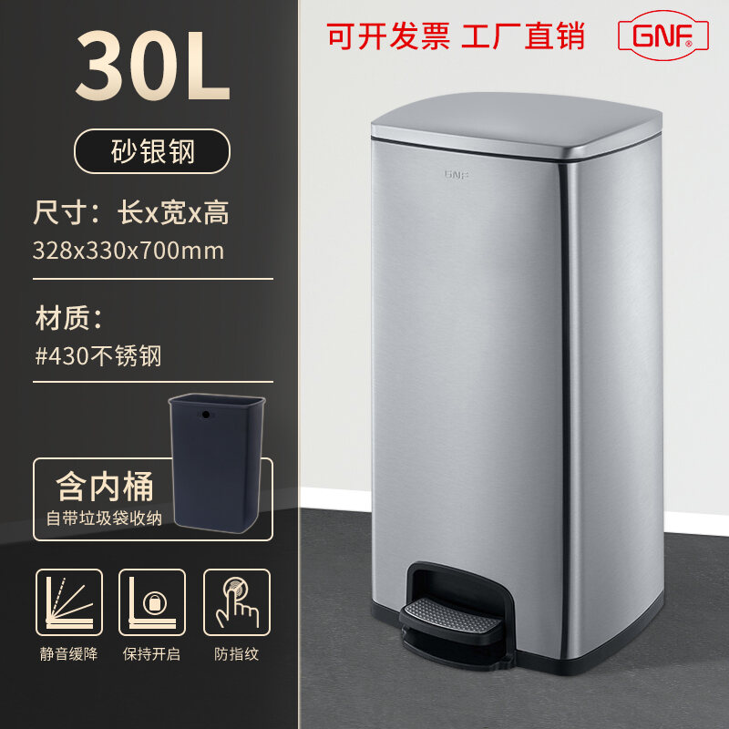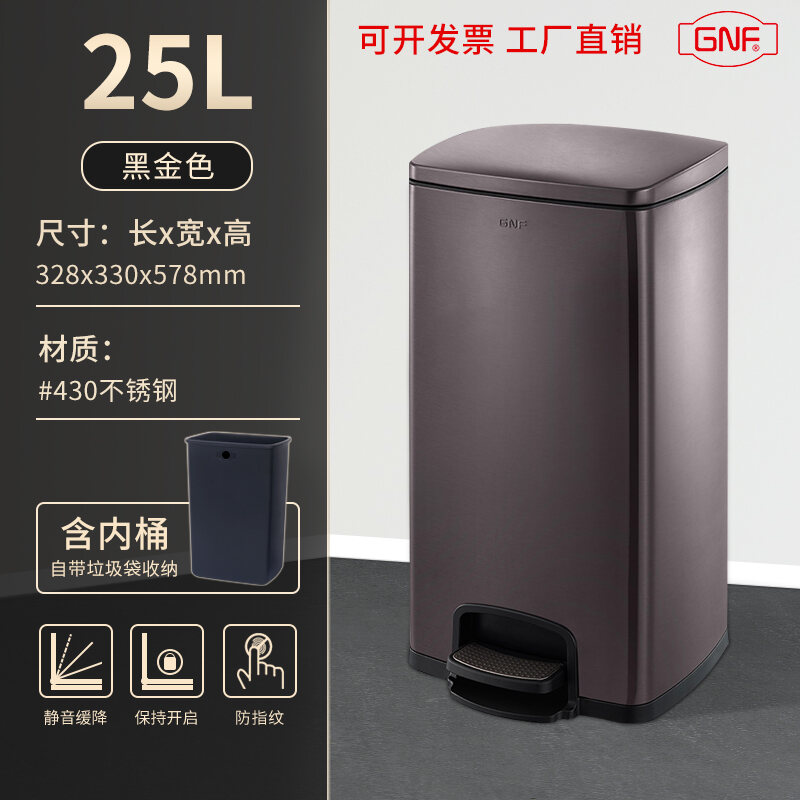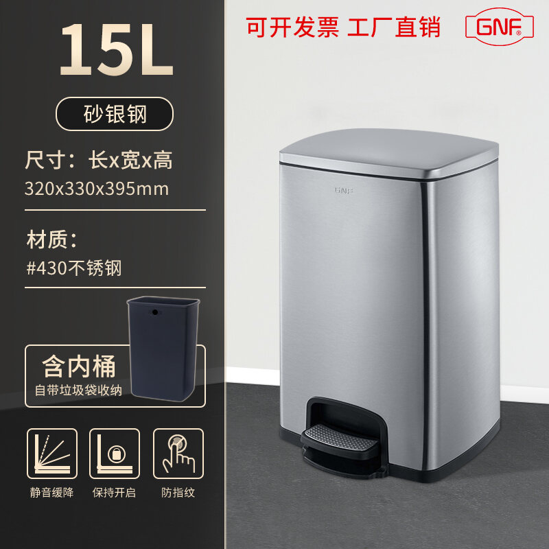 Stainless Steel Trash Can Household Pedal Square 20 Liters Bathroom Kitchen Large 25 Liters Commercial Office Storage