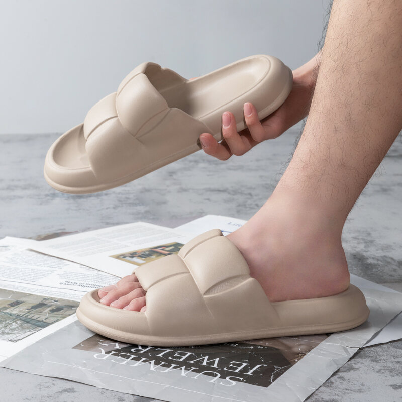 Summer New Slippers Men's Indoor Home Home Home Bath Non-slip Soft Bottom Feeling of Walking on Shit Home Simple and Stylish Outer Wear
