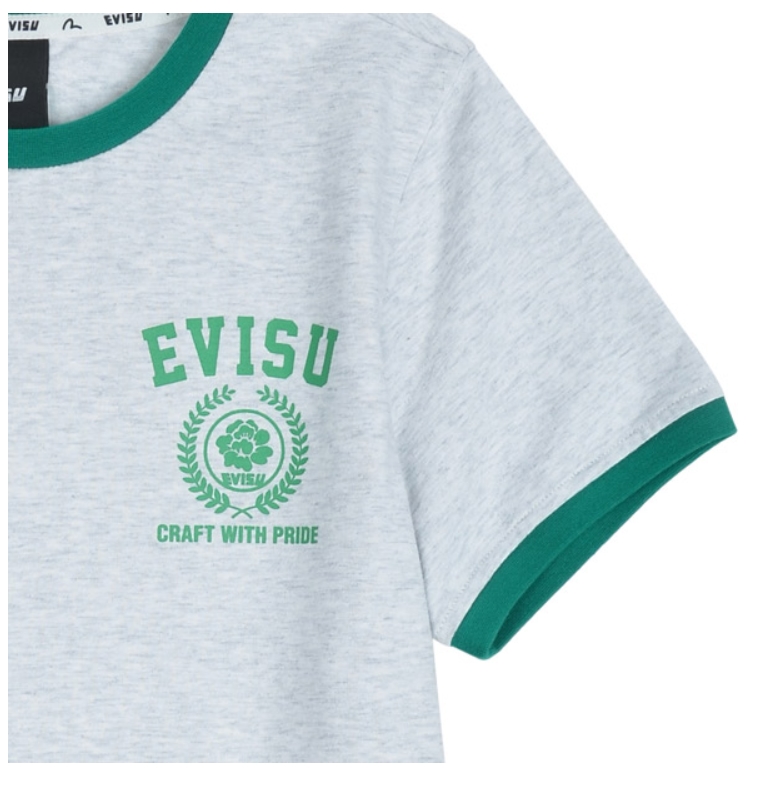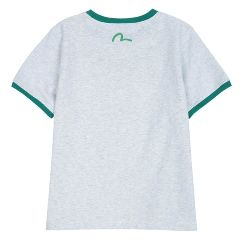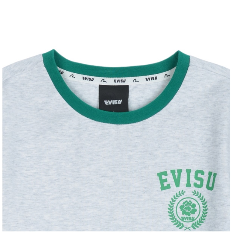 [EVISU KOREA ] 100% Authentic Circular Logo Printed Crop Ringer T-Shirt